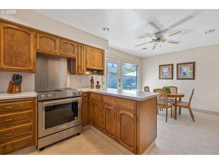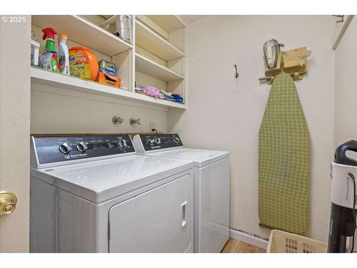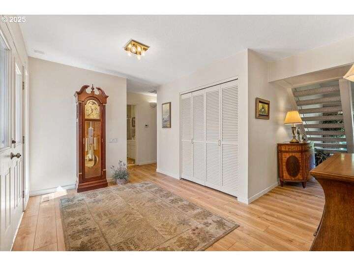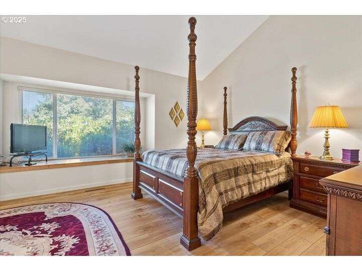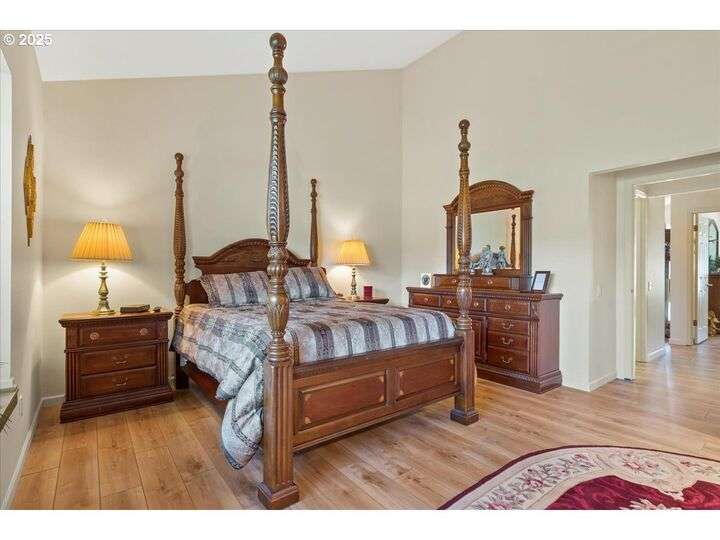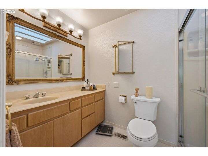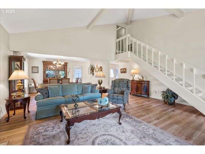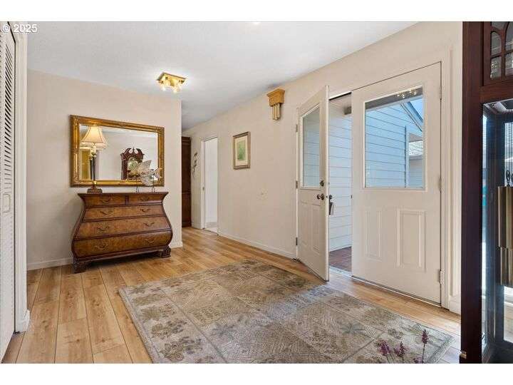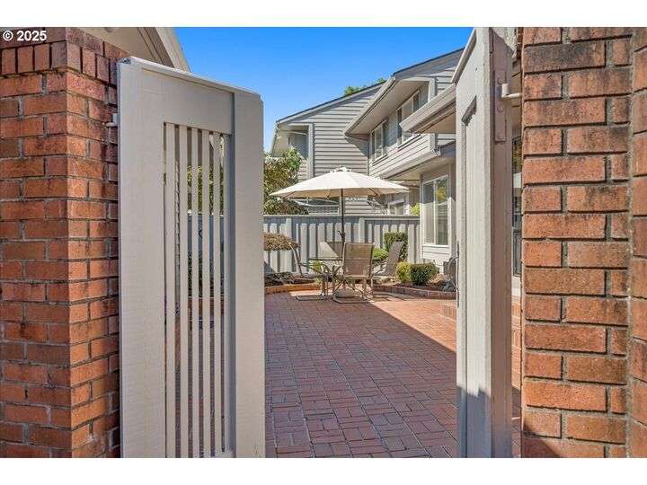 Welcome to this inviting, light-filled Eldorado plan home. Located on a quiet street and close to the Charbonneau Village for dining and a variety of activities, this one-level, 2 bedroom, 2 bath home is designed for comfort. The center of the home is the living room, featuring a soaring vaulted ceiling, a cozy fireplace, and expansive windows that bathe the space in natural light. The living and dining room combination is ideal for entertaining and the beautiful LVP flooring flows seamlessly throughout home, adding warmth and style. Off the living room, step outside onto the patio to enjoy fresh air and outdoor ambiance with views of the fairways. At the front of the home, the private fenced courtyard is your personal retreat for relaxation or entertaining guests. The primary bedroom, with views to the golf course, has a bench window seat and a rare vaulted ceiling for a sense of spaciousness. Upstairs storage or craft area awaits your creativity, while the 2-car garage includes a dedicated workshop space for all your projects.