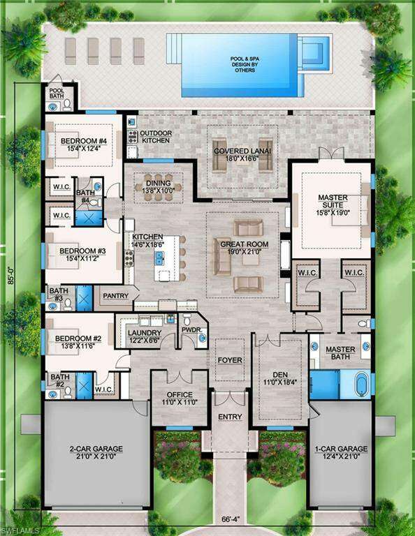 Custom-built by ABC Builders, with opportunities still available to customize the finishes. Unparalleled luxury awaits with this new construction custom home in Golden Gate Estates on a sprawling lot, offering ample space and privacy while allowing you to customize your dream residence with your preferred choice of finishes and upgrades. This property is designed to impress with 4 bedrooms, a den, a dedicated home office, 4 full baths and 2 powder rooms-including a convenient pool bath-and a versatile open-concept layout. The great room and chef-inspired kitchen create the heart of the home, seamlessly blending style and practicality. Resort-style amenities, including a sparkling pool, relaxing spa, and a fully equipped outdoor kitchen, make this property an entertainer's dream. Privacy is paramount with the thoughtfully designed split floor plan. The guest suites are tucked away in opposite corners of the home, each featuring its own en suite bath for ultimate seclusion and comfort. The primary suite occupies its own wing, with two spacious walk-in closets and a luxurious en suite bath inviting relaxation. A spacious 3-car garage provides ample room for vehicles and storage. Located in Golden Gate Estates, this home offers the best of both worlds: the tranquility and space of country living coupled with close proximity to every city convenience imaginable. Don't miss this rare opportunity to shape your dream home in an extraordinary setting.