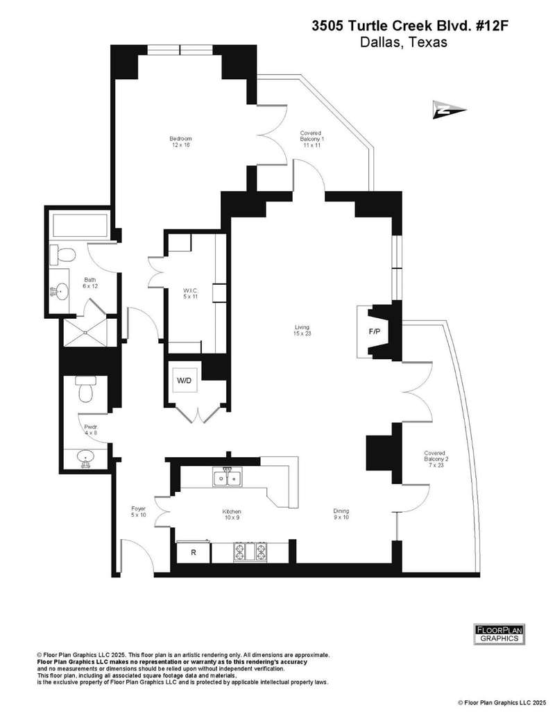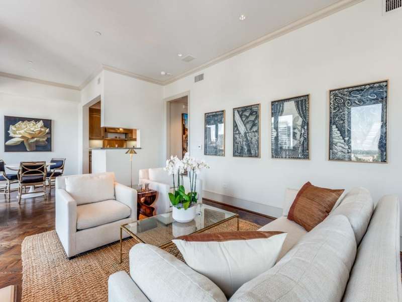 Indulge in the luxe life in this high floor, one bedroom, 1.5 bath corner residence with panoramic views at the prestigious Vendme! Perfect for either a lock-and-leave pied--terre or full-time residence, this light-filled home in the leafy Turtle Creek corridor combines the timeless sophistication of an elegant Parisian apartment with the modern comforts one expects of an ultra-luxury Dallas high-rise. 10-foot ceilings, crown moldings, custom recessed lighting, 8-foot solid panel doors, solid oak herringbone floors, a handsome fireplace, and tall French doors opening to 2 spacious balconies make this home truly exceptional. The bedroom retreat, with bespoke closet and spa bathroom swathed in Carrara marble, occupies a private corner from which to gaze at the nighttime sky. Prepare the simplest or most elaborate cuisine in the chefs kitchen, outfitted with warm paneled cabinetry, granite counters, Sub Zero refrigerator, and gas cooking. An in-unit laundry adds convenience while wiring for sound offers the potential for music throughout. Life at The Vendme is easy for the full- or part-time resident, with 24-7 concierge, valet service, on-site management, 24-7 package receiving, and a complete, skilled team of maintenance personnel. Awaiting you is a glamorous swimming pool with spa, private cabanas, and separate pavilion with gas grills, all enveloped in a screen of fragrant magnolias. Lush gardens, a fully equipped gym, locker rooms with saunas, 3 luxurious guest suites, library with coffee-tea bar, elegant entertaining salon with fountain terrace and catering kitchen, dog walk, and 2 dedicated, well-located garage parking spaces add to the effortless lifestyle. All this, and more, next door to Turtle Creek Park and within minutes of the Dallas Arts District, world-class shopping at Highland Park Village, and so many of the citys favorite restaurants. Come see why The Vendme is arguably Dallas' best address.