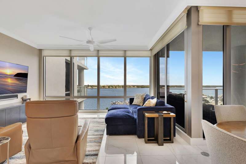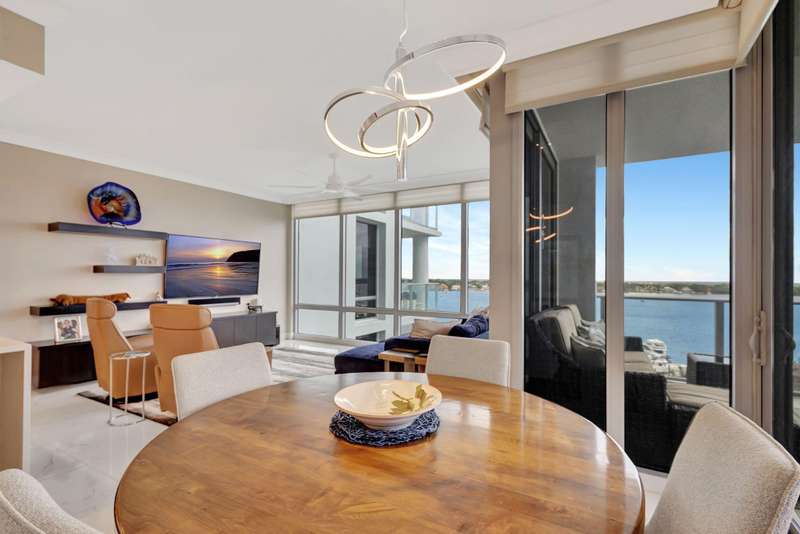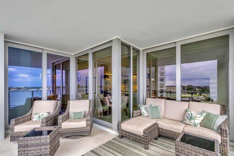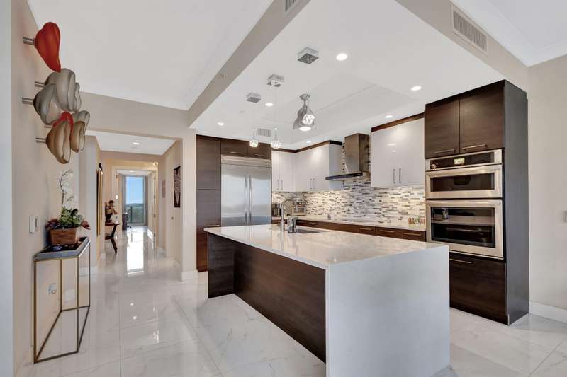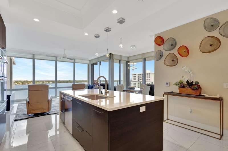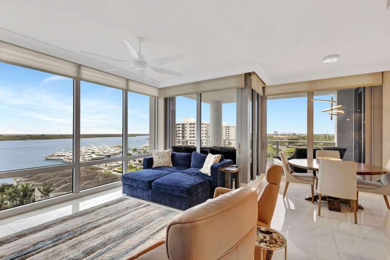 Incredible 8th floor Brandeis model with spectacular intracoastal and ocean views . Panoramic sunset views from the western facing balcony. Built-ins throughout, including built-in desk in the guest bedroom. The community lives like a resort. 24 hour security in this private gated oasis with multiple pools and gyms. Private marina with a beach area. Luxury waterfront living at The Water Club in North Palm Beach. Private elevator to front door. Built in 2016, this home features 2 Bedrooms 2.5 Baths + Den. Total Sq. Ft. 1,913 & 1,578 Living Sq. Ft. Full East and Western facing exposure