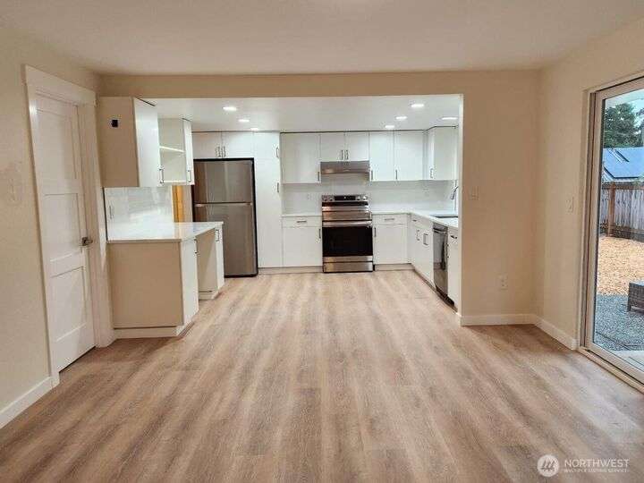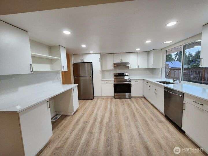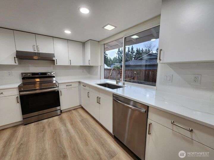 3 bed, 2 bath home that has been completely remodeled from floor to ceiling with high end finishes throughout. Open concept kitchen/living area. The kitchen features new quartz countertops, tiled back splash, stainless steel appliances, and generous storage/counter space and beautiful Command Center. 2 full baths with all new tiled shower/tub surrounds, vanities, mirrors, sinks, and fixtures. Primary bedroom with ensuite, and 2 guest bedrooms. Attached 2car garage. Fully fenced, low maintenance yard, located on large corner lot in quiet cul de sac. Terms: 1st, security deposit equal to 1 month rent. Lease Duration: 12 months. No Smoking. No pets. No Co-signers. Renters insurance required. 3:1 income ratio. 700+ credit score.