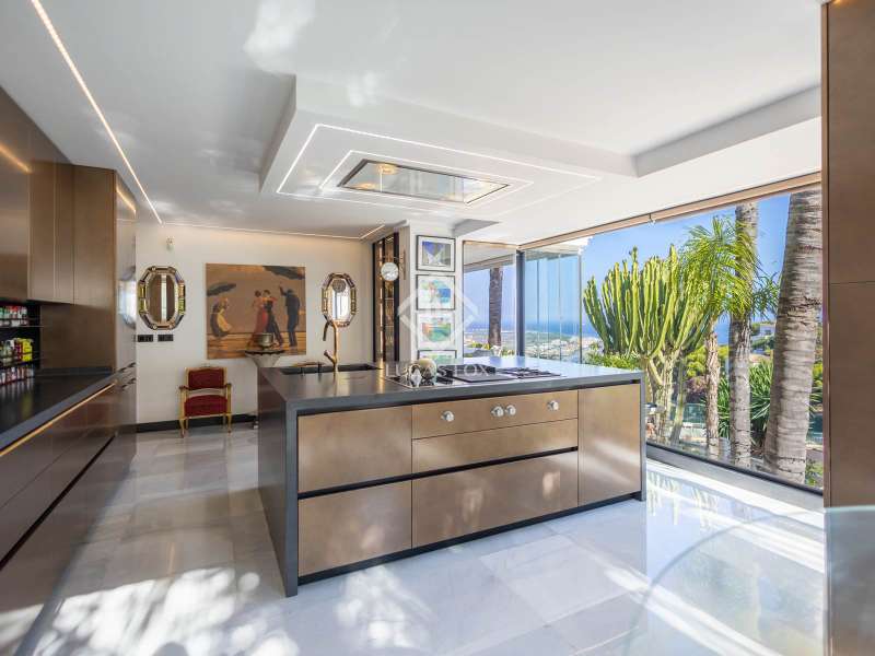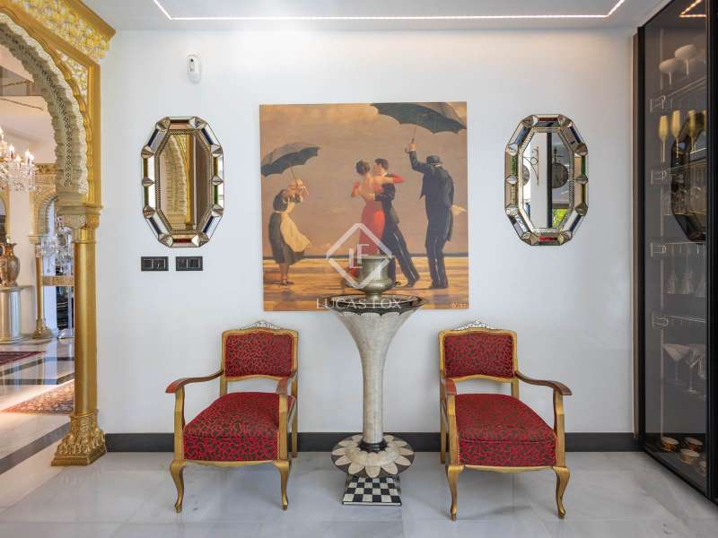 Lucas Fox is privileged to present, high atop the exclusive Monte de los Almendros development , the most majestic and unique villa in Salobreña. With 485 m² of design that blends Nasrid elegance, Andalusian tradition, and contemporary comfort, this property redefines Mediterranean luxury. Set on a plot of almost 900 m², its exterior is a true oasis: mature gardens, a private pool, a jacuzzi area, chill-out spaces, outdoor dining areas, a fully equipped exterior kitchen, and an unparalleled atmosphere of privacy. As soon as you walk through the main door, the house welcomes you with the grandeur of a Nasrid palace, boasting an entrance hall crowned by a spectacular dome that opens onto a majestic living room with arches, mosaics, and handcrafted details that convey history and character. This space comprises three rooms: a living area, a private living room —with a designer bar, and a dining room with open views of the sea and Salobreña Bay. The kitchen, designed by Gaggenau, is designed for food lovers, with a central island and direct access to the exterior dining room . Light floods every corner thanks to the large windows that integrate the interior with the exterior. The villa currently offers two private suites, each measuring over 100 m², comparable to the finest in a five-star hotel. One on the ground floor features a living room, dressing room, study, minibar, and direct access to the garden and jacuzzi area. The other, floor , features a full bathroom , dressing room, minibar, a private terrace with a gym, and the most spectacular views in the house. The layout easily allows for expansion to five or six bedrooms, allowing the property to adapt to any lifestyle. In the basement, the villa impresses with a dreamy wine wine cellar , an additional living room , and a closed garage for two cars. A separate apartment for staff completes this exceptional property. Ultimately, this villa is not just a house, it's an incomparable lifestyle, where Nasrid history meets modern luxury in a unique enclave on the Costa Tropical.