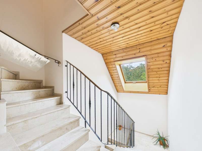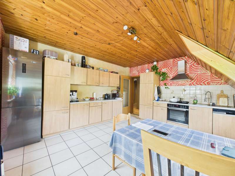 This attractive, detached two-family house is situated in a quiet and natural location in Barthelmesaurach on a spacious plot of approx. 965 m². Built in 1986 in solid construction, the house impresses with its solid substance, modern furnishings and long-term potential for expansion. The property has a full basement and, in addition to two spacious residential units, also offers the possibility of converting the attic - ideal for investors or multi-generational living. The total living space is approx. 238 m² and is divided into two identically designed 4-room apartments on the first floor and second floor. Both residential units are currently rented out reliably. The apartment on the first floor has a sunny terrace with direct access to the well-kept garden and thus offers additional living comfort in a green setting. The property has been extensively modernized in recent years: In 2022, all windows were replaced with modern, triple-glazed plastic windows. The façade was also repainted in 2022, giving the house a fresh and well-maintained appearance. The oil heating system was converted to modern condensing technology in 2020 and provides efficient and reliable heating for the entire building. The bathrooms in both apartments were completely renovated in 2015 and are bright, modern and contemporary. The floors are a high-quality combination of parquet, tiles and laminate, giving the living spaces a pleasant and homely atmosphere. The house also has a spacious double garage with a pitched roof. This not only offers space for two vehicles, but also additional storage space in the roof area - ideal for hobbies, storage or a workshop. Chimney devices are already available for both units to retrofit a Swedish stove, for example. This property represents a rare opportunity to acquire a well-maintained and future-proof home in an attractive location with development potential. Whether for owner-occupation, as a multi-generational home or as an investment - there are a variety of possible uses here.
