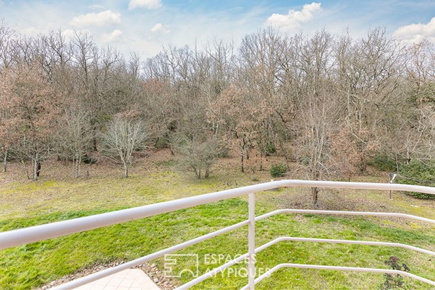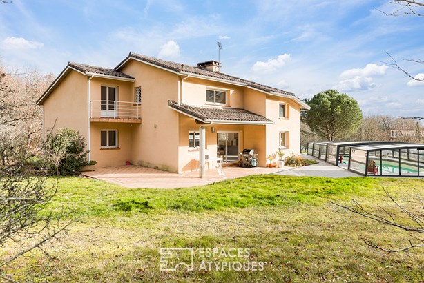 It is on the edge of the Bouconne forest that this architect-designed house from 1996 is located. On a plot of more than 5000sqm, with a swimming pool, it offers 207sqm of living space. The first level offers a beautiful living space of 80sqm, completely open to the outside.