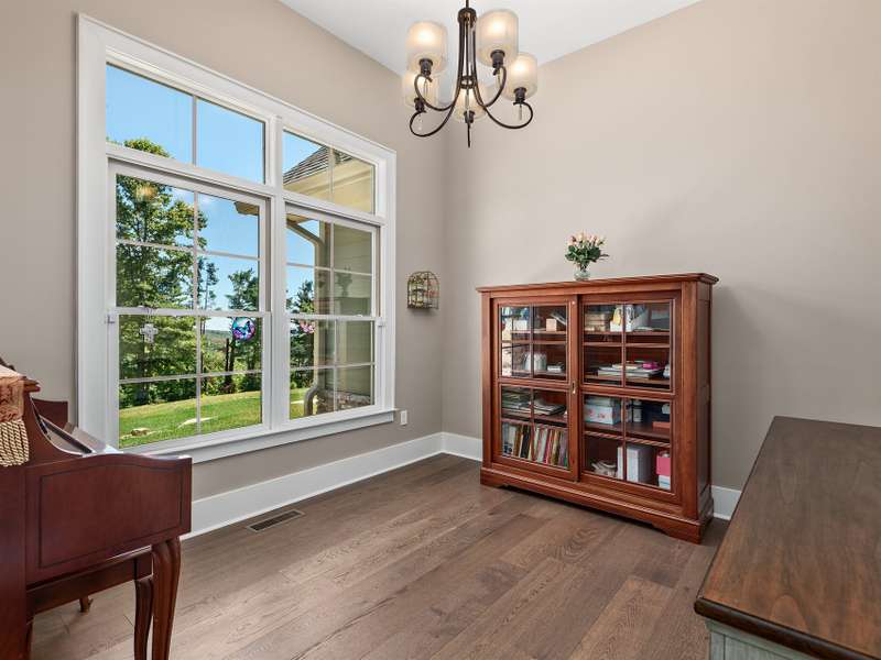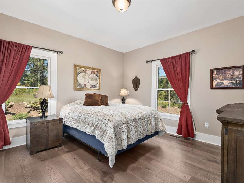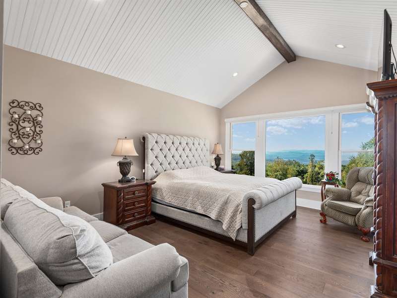 A "Mountain Manor" Reimagined for Modern, Manageable Living!This immaculate, SINGLE-LEVEL mountain-farmhouse blend is privately tucked off the main road on a full acre of gentle, usable yard space...offering the rare opportunity to enjoy both sunrise and sunset vistas from different perspectives.The spacious, open floor plan is mindfully designed for effortless flow, connecting the epicurean eat-in kitchen to the great room which features soaring windows, a stone fireplace, and seamless access to the covered outdoor living space which showcases expansive views of the western Blue Ridge Mountain Range.The ensuite primary bedroom and bath offer privacy and comfort with age-in-place design elements such as wide doorways, elevated counters, and a zero-entry shower.The beautifully appointed chef's kitchen highlights stunning quartzite counters, an oversized island with comfortable seating for 4, a 6 burner gas range with pot filler, farmhouse sink, extended cabinets with back lighting and glass doors, and a generously proportioned butler's pantry with custom cabinet storage and a full sized second refrigerator. Additional home highlights include hardwood floors, tankless water heater, 22kw Generac generator, whole-house surge protection, SimpliSafe system, LeafFilter gutters, coated garage floor, and transferable warranties. Home is offered fully furnished. Only two years young, this practically new mountain top gem is an absolute MUST SEE!