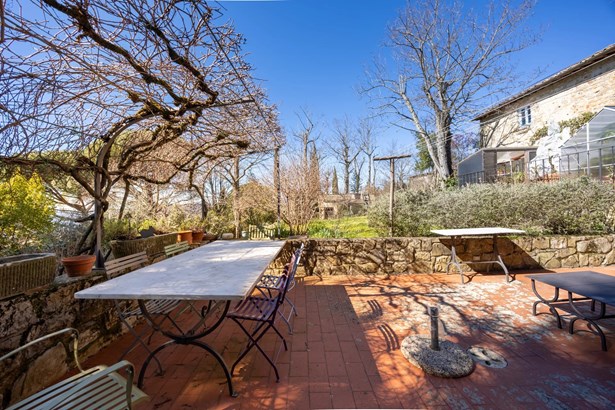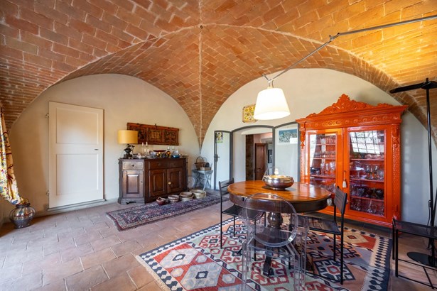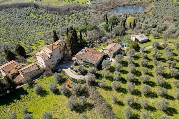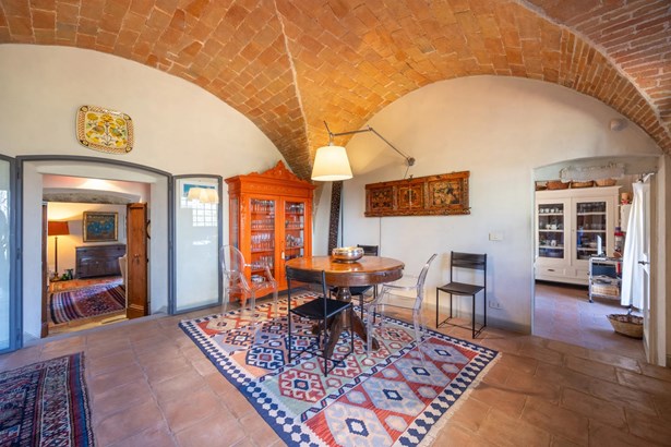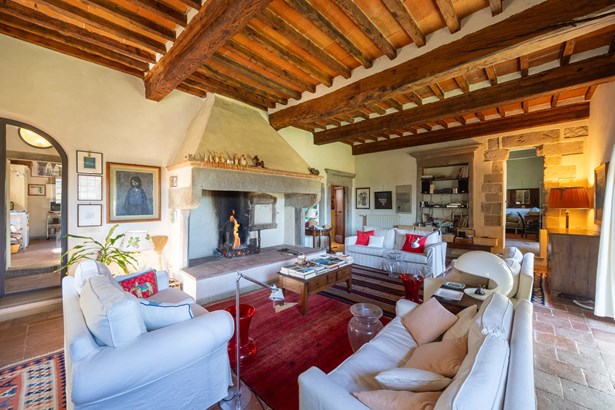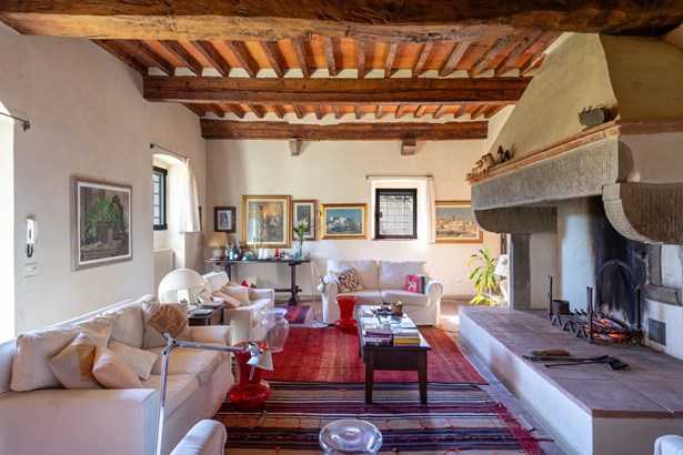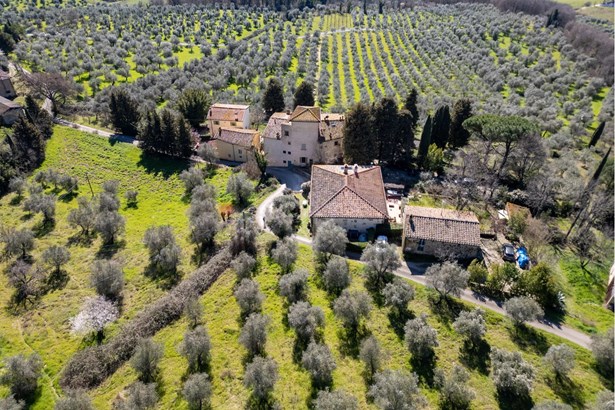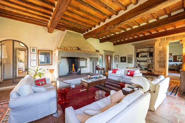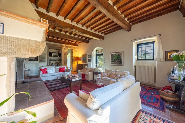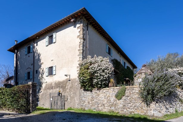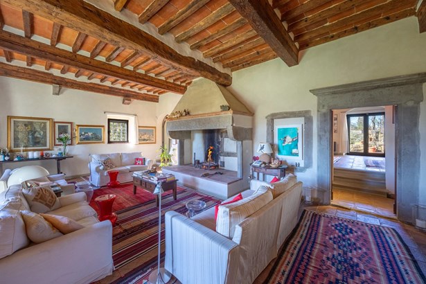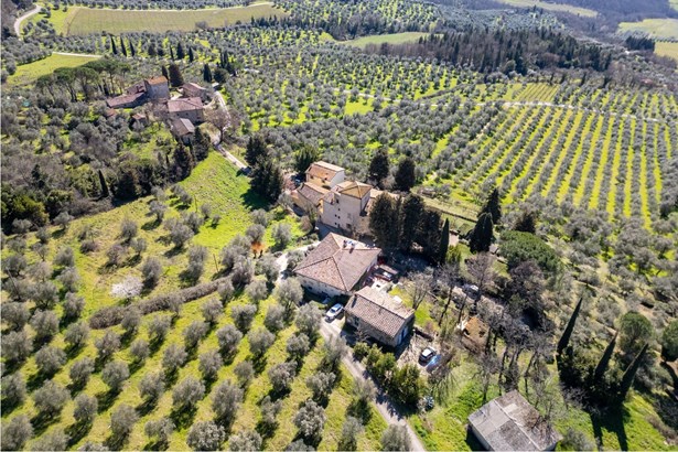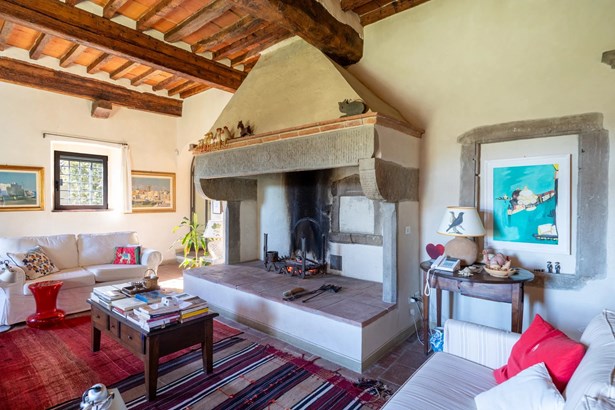 The property is located in the hamlet of “Tigliano” in the municipality of Pontassieve, which has been part of the Fattoria di Grignano for many centuries.It originated as a tower house in the 12th century. Subsequent enlargements resulted in the “scapicozzatura” of the tower, and before being used as a farmhouse, it was used for religious purposes, as specific finishes, in the present living room, suggest.Tigliano is a delightful hamlet where peace and quiet is assured.The property, regular in shape and free on four sides, was renovated in the 2000s by the current owners and continuously improved in subsequent years.It is arranged on two levels. On the ground floor we find a large living room with an important working fireplace, ceiling with exposed beams and “handmade” terracotta floors. Communicating with the living room is the beautiful eat-in kitchen and dining room. The kitchen is characterized by the beautiful Carrara marble details with which the solid wood countertop was made unique with the sink, cooktop and tabletop. The brick ribbed ceiling characterizes the dining room. Both rooms have direct access to the large outdoor slab with a terracotta floor that extends the living area during summer periods. Adjacent to the dining room is a large room used as a pantry. Also on the same floor a second living room that can be used as a study/bedroom. Two bathrooms. A stone staircase leads down to the charming cellar with brick vaults.The upper floor consists of a large living room/library at the living room with a fireplace below, four bedrooms and two bathrooms.Thanks to the presence of two connecting stairwells, an independent portion can be obtained from the consistency of the property.The property is characterized by ceilings ranging between 3.20 m and 3.50 m, open spaces, and many openings to the outside, features not easily found in farmhouses. The stone portals on the ground floor are valuable.On the basement floor a functional technical room.In addition to the terracotta slab mentioned above, a lovely garden completes the property.The hamlet and the property are located in a position from which, as far as the eye can see, no settlements such as factories, highways, railways. The landscape is, therefore, made up of woods and estates cultivated with olive trees and vines. Clearly visible are the Consuma Pass and the forest of Vallombrosa with the bell tower of the Abbey.The area enjoys a favourable climate, both because of its protected position from the north and its height above sea level (400m).It is 16km from Florence, and there is a public bus service to Florence, with a stop 150m from the property.At the Sieci train station (8 km away) 4 trains per hour guarantee a connection with Florence (Campo Marte station in 11 minutes, S.M.Novella station in 16/20 minutes).