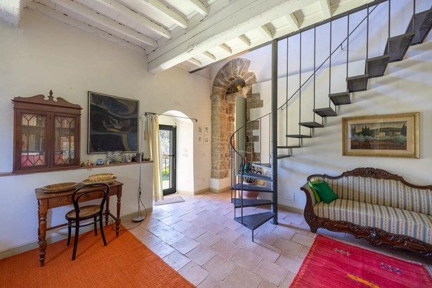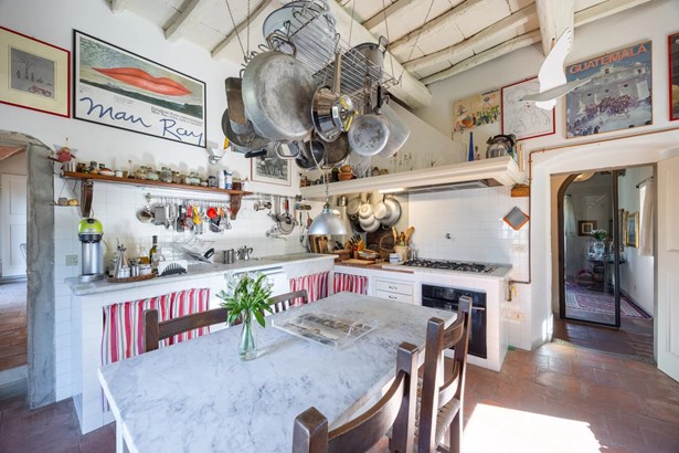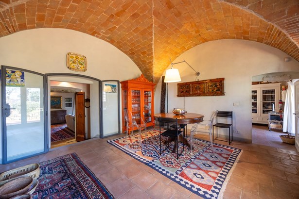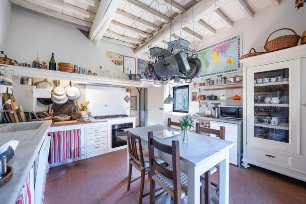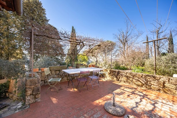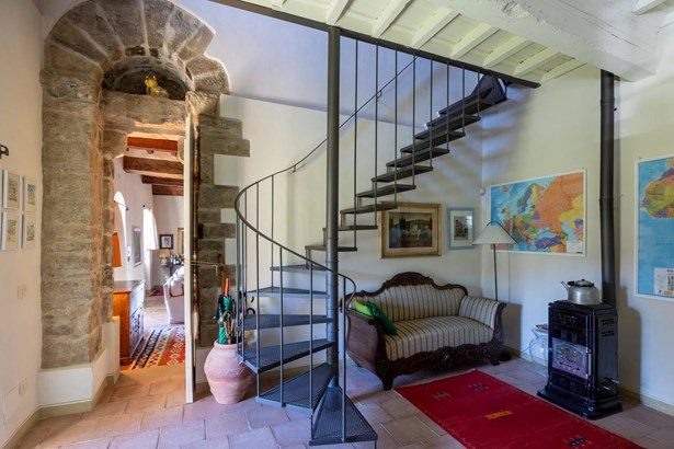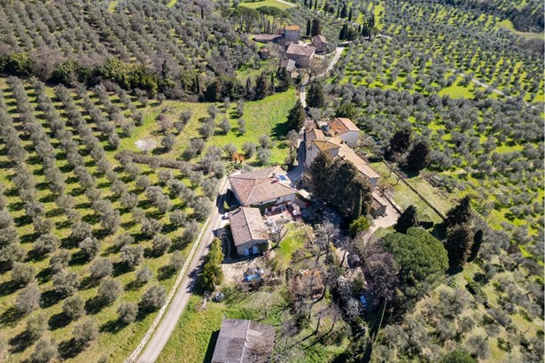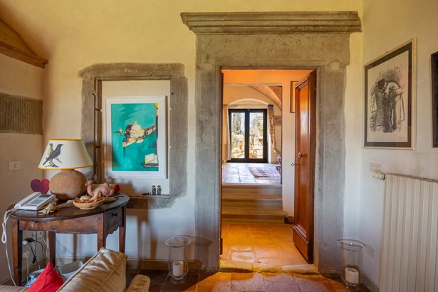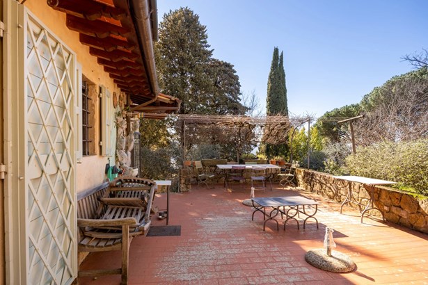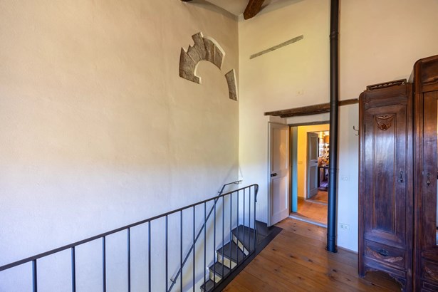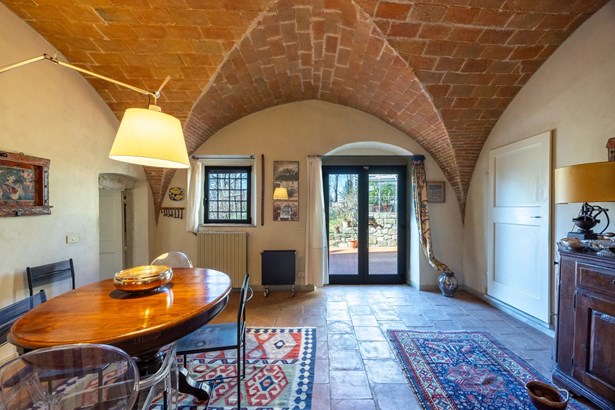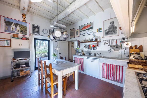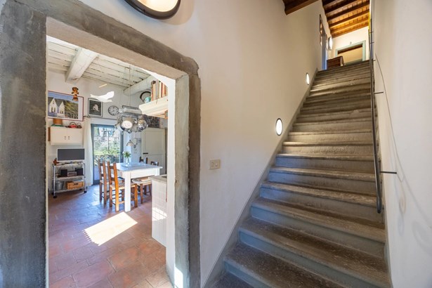 The property is located in the hamlet of “Tigliano” in the municipality of Pontassieve, which has been part of the Fattoria di Grignano for many centuries.It originated as a tower house in the 12th century. Subsequent enlargements resulted in the “scapicozzatura” of the tower, and before being used as a farmhouse, it was used for religious purposes, as specific finishes, in the present living room, suggest.Tigliano is a delightful hamlet where peace and quiet is assured.The property, regular in shape and free on four sides, was renovated in the 2000s by the current owners and continuously improved in subsequent years.It is arranged on two levels. On the ground floor we find a large living room with an important working fireplace, ceiling with exposed beams and “handmade” terracotta floors. Communicating with the living room is the beautiful eat-in kitchen and dining room. The kitchen is characterized by the beautiful Carrara marble details with which the solid wood countertop was made unique with the sink, cooktop and tabletop. The brick ribbed ceiling characterizes the dining room. Both rooms have direct access to the large outdoor slab with a terracotta floor that extends the living area during summer periods. Adjacent to the dining room is a large room used as a pantry. Also on the same floor a second living room that can be used as a study/bedroom. Two bathrooms. A stone staircase leads down to the charming cellar with brick vaults.The upper floor consists of a large living room/library at the living room with a fireplace below, four bedrooms and two bathrooms.Thanks to the presence of two connecting stairwells, an independent portion can be obtained from the consistency of the property.The property is characterized by ceilings ranging between 3.20 m and 3.50 m, open spaces, and many openings to the outside, features not easily found in farmhouses. The stone portals on the ground floor are valuable.On the basement floor a functional technical room.In addition to the terracotta slab mentioned above, a lovely garden completes the property.The hamlet and the property are located in a position from which, as far as the eye can see, no settlements such as factories, highways, railways. The landscape is, therefore, made up of woods and estates cultivated with olive trees and vines. Clearly visible are the Consuma Pass and the forest of Vallombrosa with the bell tower of the Abbey.The area enjoys a favourable climate, both because of its protected position from the north and its height above sea level (400m).It is 16km from Florence, and there is a public bus service to Florence, with a stop 150m from the property.At the Sieci train station (8 km away) 4 trains per hour guarantee a connection with Florence (Campo Marte station in 11 minutes, S.M.Novella station in 16/20 minutes).