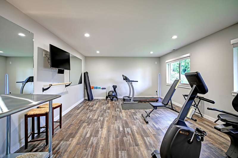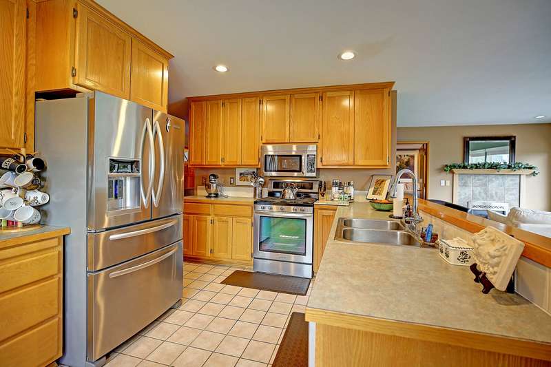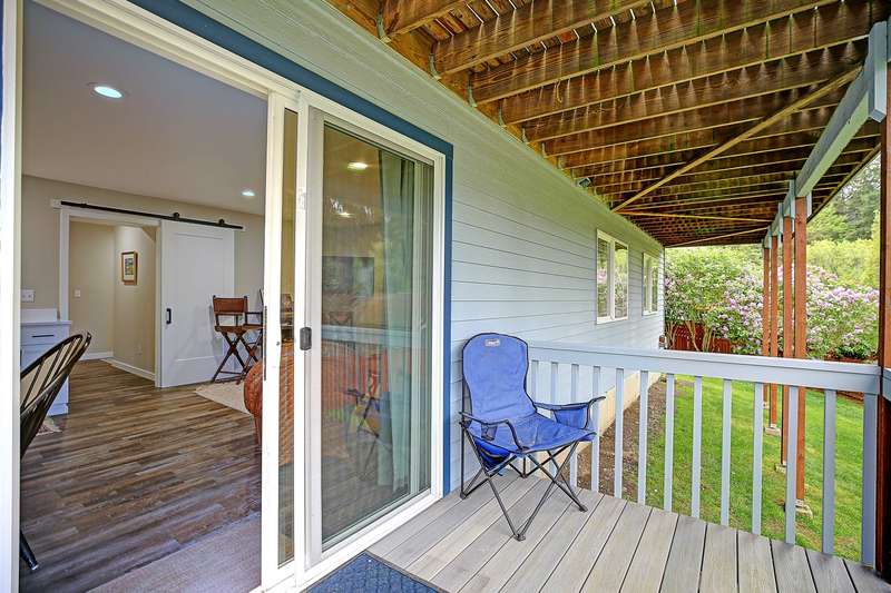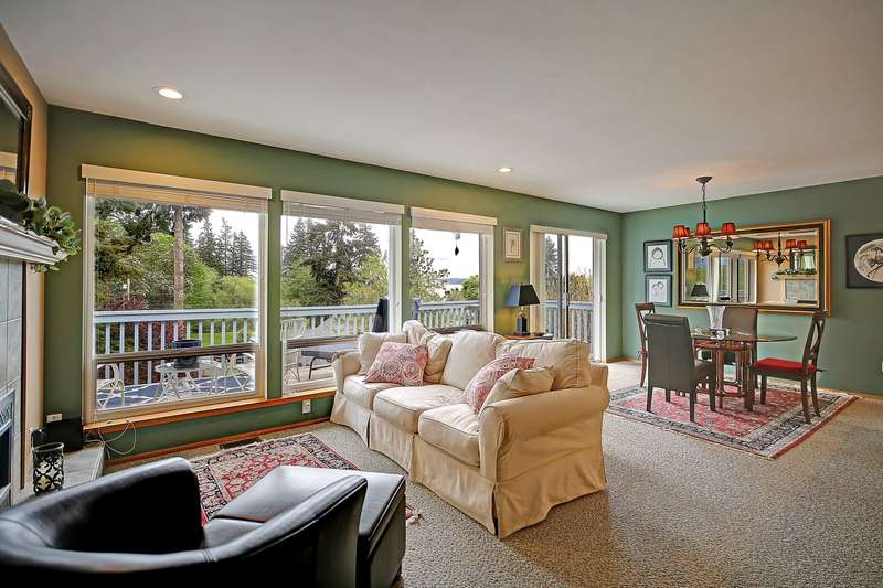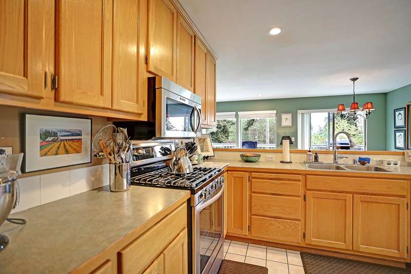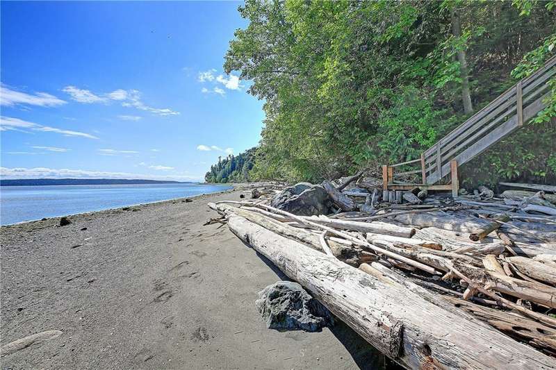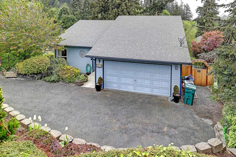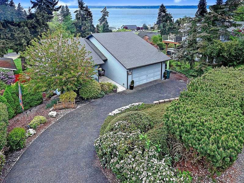 Gorgeous View Home w/ Main-Floor Living, Entertaining Spaces & Private Beaches! Remodeled & kept in immaculate-condition, home has been professionally cared for inside and out. Primary view suite, large guest bedrooms & open floorplan. Finished garage with no steps for easy access. NEW lower level with kitchenette, separate entrance, full bath, private guest bedroom & tons of storage. Exercise room/theater/bonus room, PLUS living area with view deck! Fenced, private yard with pathways, waterfall pond, & garden areas. Heat Pump/AC, Auto Generator, LED lighting, high-speed broadband. Private beach right in front, boat launch nearby, great whale watching, crabbing, boating, swimming or just enjoying the incredible Island Oasis! Welcome Home.