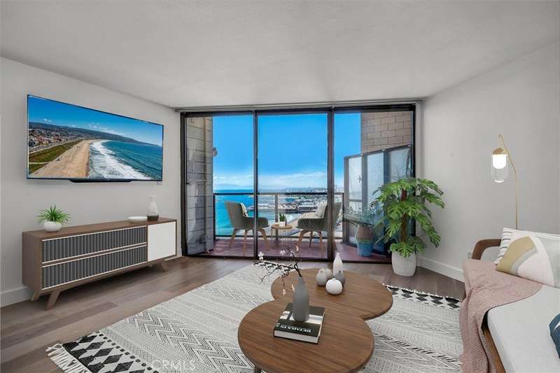 Experience coastal living at its finest in this top-floor penthouse, offering sweeping ocean, park, and city views. This spacious 1-bedroom, 1.5-bath residence has been tastefully updated in a contemporary style, offering comfort and sophistication. The open living and dining area features laminate wood flooring and flows seamlessly to two balconies, perfect for enjoying sunsets, sparkling ocean views stretching along the sandy beaches of South Redondo, all the way to Malibu, and the dramatic backdrop of DTLA and the Mountains. The kitchen is appointed with quartz counters, stainless steel appliances, and modern finishes, while the convenience of an in-unit stackable washer and dryer makes daily living effortless. The generous bedroom suite includes direct balcony access, a beautifully updated bath, and an immense walk-in closet that provides exceptional storage. A guest powder room completes the floor plan. Amenities include a clubhouse, swimming pool, hot tub, fitness center, and secure gated entry. Two-car tandem parking plus additional storage offer plenty of room for vehicles and coastal gear. Residents enjoy direct access from the garage to the beach and bike path, and the home is just steps to the weekly Farmers Market, Veterans Park, and minutes to shopping and fine dining in the Riviera Village. This penthouse combines convenience, style, and panoramic views for the ultimate South Bay beach city lifestyle. **Some Photos virtually staged***