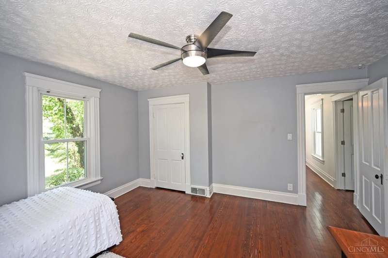 Coming Soon-Historical 2 story aluminum siding built 1901-located on 2.078 acres very usable with many trees (lovely setting) in cul de sac of private drive. Hardwood throughout. Refinished by Finishing Touches 2014, updated LR with gas fireplace, dining room chandelier with walkout to deck, kitchen with 42 cabinets, 36 Italian range, removable island, adjoining washer & dryer*Full bath 2016/17, FR with woodburning fireplace, tile floor walkout to deck. 2nd floor-3/4 bedrooms (4th could be study). Roof 2016/17, gutter guards 2023, basement waterproofed 2020-2025, windows & sliding door in DR 2016/17. New gas line added 2016, deck replaced plus 1 added 2023. Galvined pipe in basement replaced with PEX, septic pump 2022-pumped 2024. New front door 2021. All ducts cleaned 2024. Must see! Walking distance to schools, recreation center & pool. Short walk to Mt Washington for library, banks, Kroger, Walgreens, restaurants & Water Tower. 15 minutes from downtown and CVG.