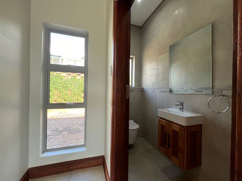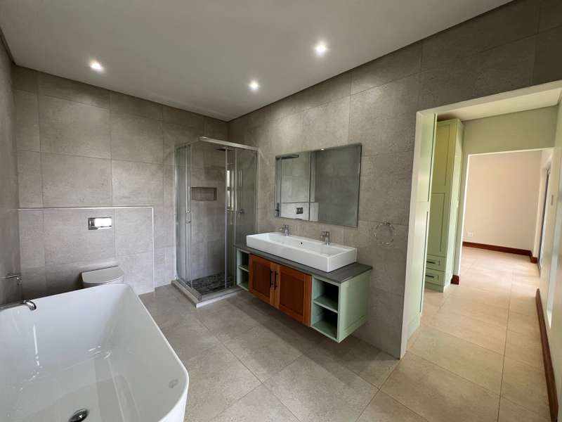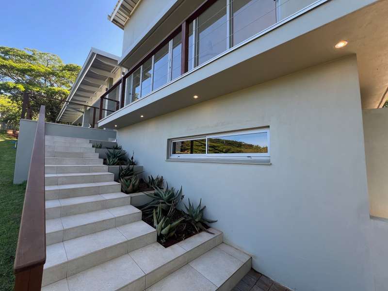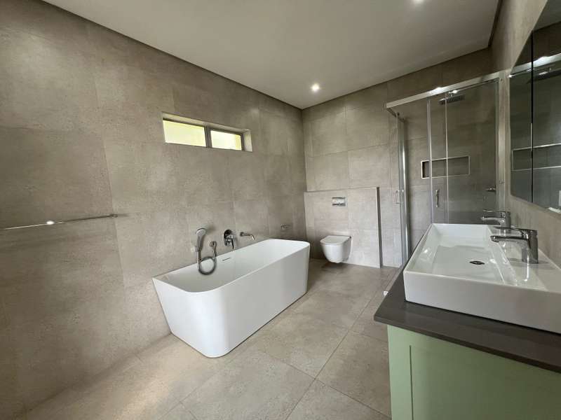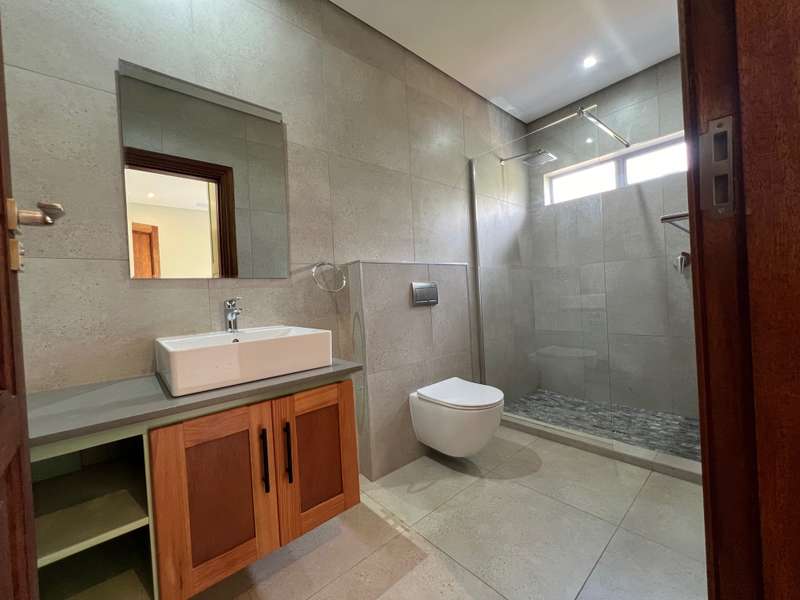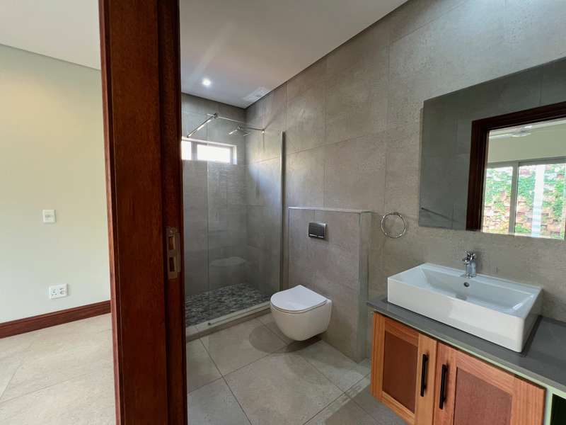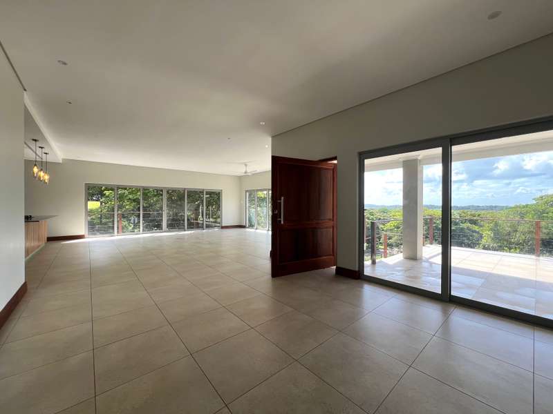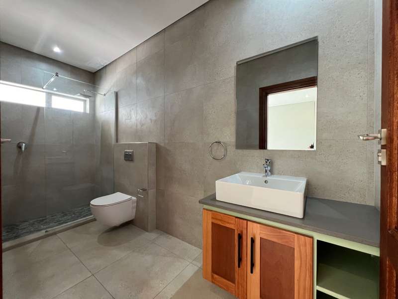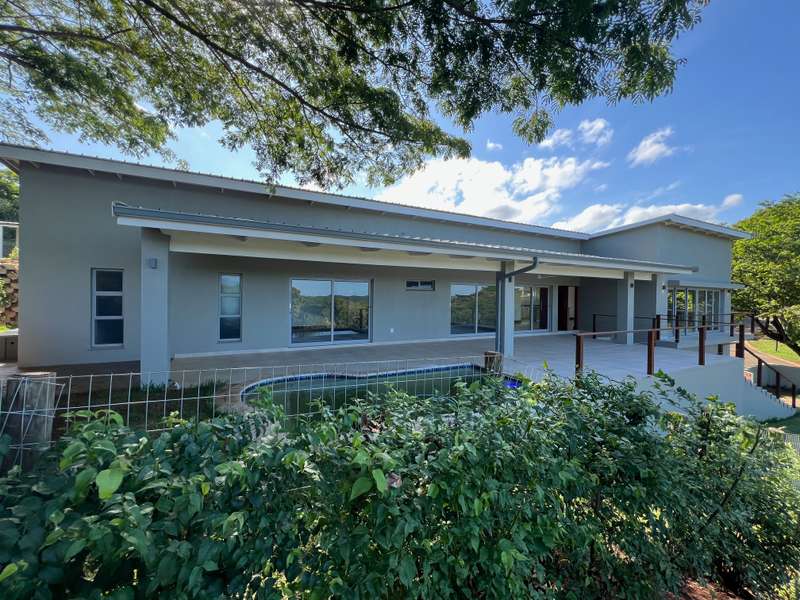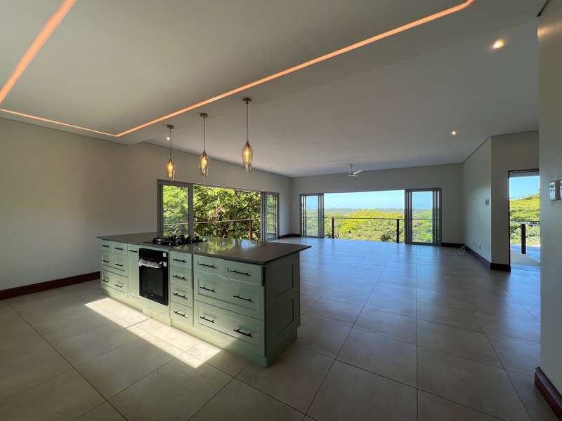 This newly built, architecturally designed home offers the perfect blend of modern elegance and functionality, featuring 4 spacious bedrooms, each with its own en-suite bathroom and separate guest toilet. The open-plan kitchen effortlessly flows into the lounge, dining area, and out onto a large, covered patio overlooking a sparkling swimming pool. It's the ideal setting for entertaining, with captivating views of the forest stretching towards the sea, creating a serene and inviting atmosphere. Sliding stacker doors seamlessly merge indoor and outdoor living spaces. The kitchen boasts top-of-the-line finishes, including a premium gas stove, and connects to a generous scullery with ample space for all household necessities. The expansive garden provides the potential for a boma or fire pit, perfect for outdoor gatherings. Additional features include a double and single garage with a storeroom and staff bathroom, as well as ample guest parking. Also a 10,000 liter water tank with automated pump. This home is a sanctuary of style and comfort, offering the ultimate in coastal living. This Eco Estate has returned the land to its natural beauty and splendour through rehabilitation of local flora and fauna. Bird life is particularly prolific in the area with over 300 species having been recorded. Safe outdoor entertainment with walking and cycling trails and picnic areas.