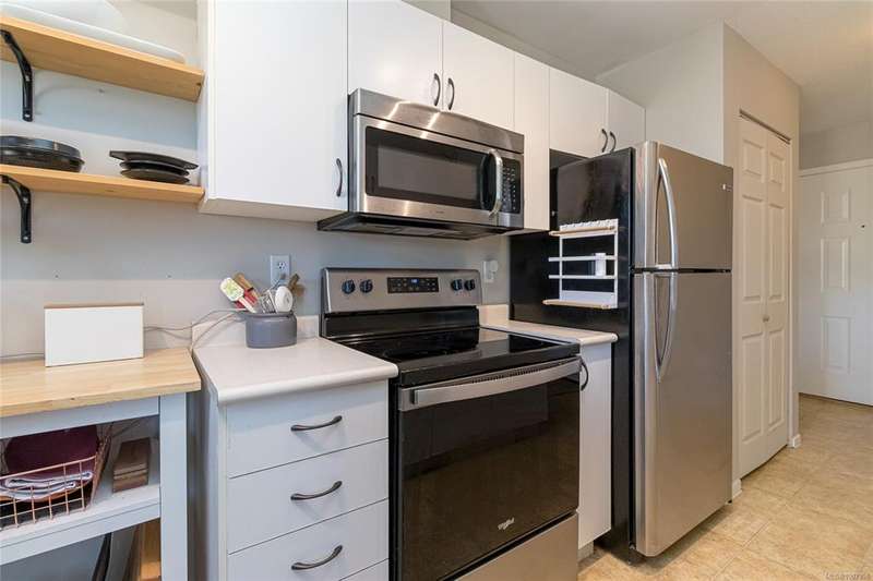 Welcome to the Balmoral! This spacious, 2 bdrm 2 FULL bthrm TOP FLOOR CORNER UNIT offers an abundance of natural light, with full size stainless steel appliances, a dining area, and convenient in-suite laundry. The cozy natural gas fireplace in the living room provides an efficient heating option and a cheerful ambiance (gas incl. in strata fees!). On a quiet street with secure undergound parking & separate storage unit, this rentable, all-ages home is a great place to invest, as the neighbourhood is seeing dramatic change with several new developments under way and recently completed. Recent upgrades to this well managed and pet-friendly building include an elevator update, new vinyl windows & sliding glass doors. Enjoy the fantastic walk/transit score in this vibrant community of Upper Cook Street Village, steps to popular cafés & restaurants, Royal Athletic Park, Save on More Memorial Centre, Fernwood Village, Belfry Theatre, and beautiful downtown Victoria. Book your showing today!