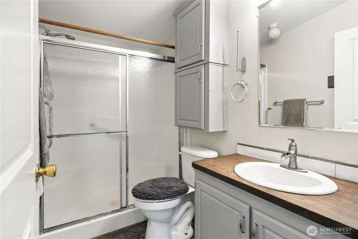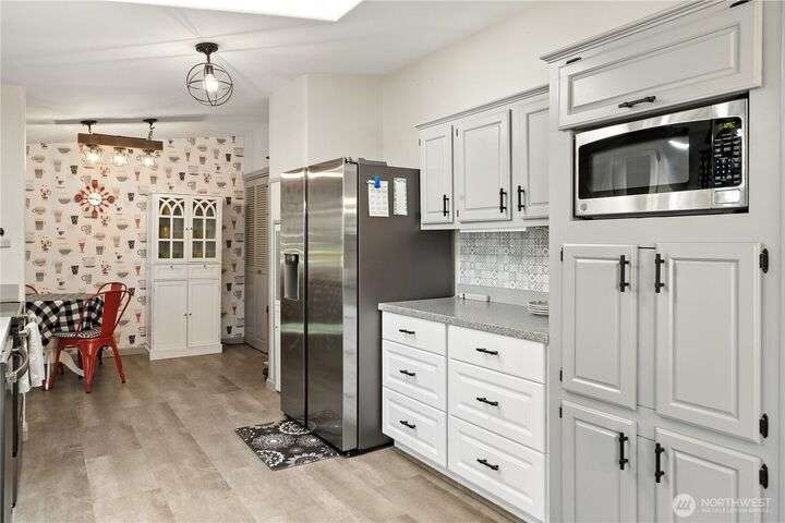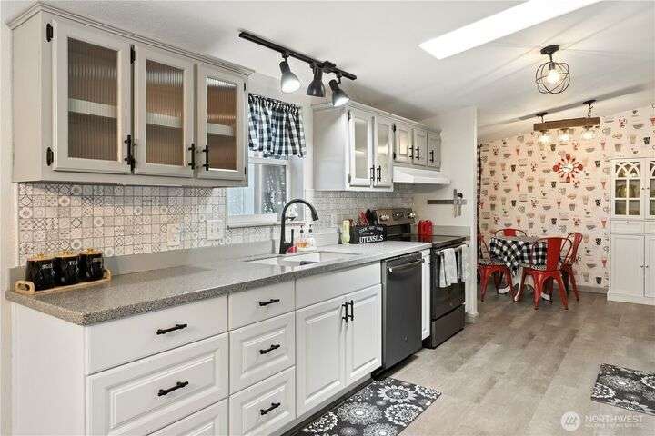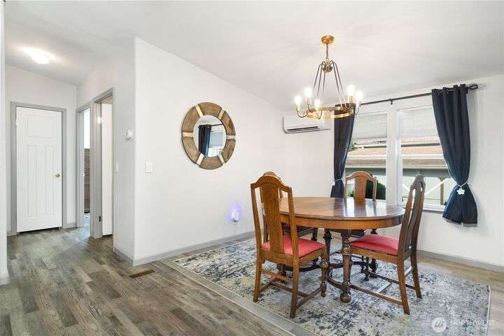 Enjoy Premier Senior Living in this elegantly appointed home with new vinyl flooring throughout, updated lighting, six-panel doors & trim, renovated bathrooms featuring walk-in showers. Kitchen features custom-painted cabinets, Corian countertops, tile backsplash, new stainless appliances & charming breakfast nook w/matching table. Primary bedroom has a custom wood headboard & bath with stylish barn doors. Corner lot, beautiful landscaping, enclosed porch along w/spacious sitting area suitable for entertaining. Ductless heat pump, ramp access, 3 sheds for ample storage & workshop. Silverdale Estates is a 55+ community with a clubhouse, indoor swimming pool, hot tub, sauna & more. Close to shopping, restaurants & medical facilities.