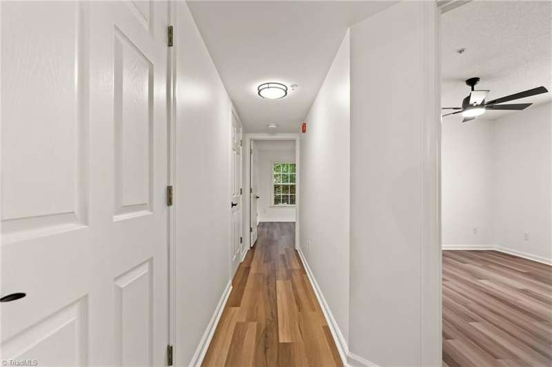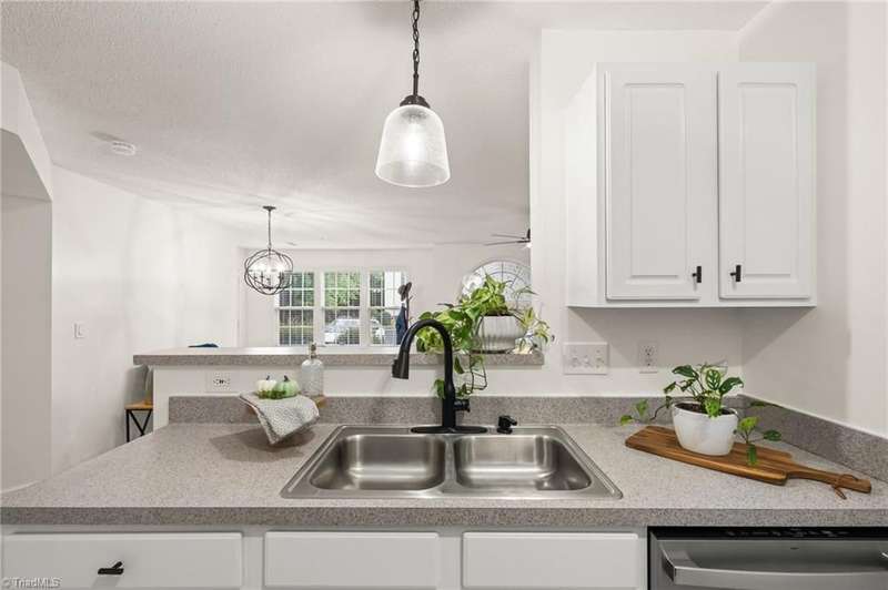 Main level condo with a rare private side entry and wooded views! This 2 bedroom, 2 bath home has been remodeled throughout with attention to detail. It feels like walking into a home - So stunning! The open floor plan offers great flow for everyday living & entertaining. Both bathrooms have been fully remodeled w/modern finishes, and all lighting throughout the unit is brand new. The kitchen and living areas are bright and open, with unique built-in corner shelving that provides space for display or storage. The primary suite includes a remodeled private bath, Plus a spacious walk in closet with built in shelving! Secondary bedroom is also roomy with access to the updated hall bath. Enjoy the convenience of main-level living with no stairs + the privacy of your own side entrance, plus the rare bonus of wooded views right outside your windows. Located within blocks of High Point University, shopping, and restaurants - An unbeatable location! Open Saturday and Sunday 1-3 pm.