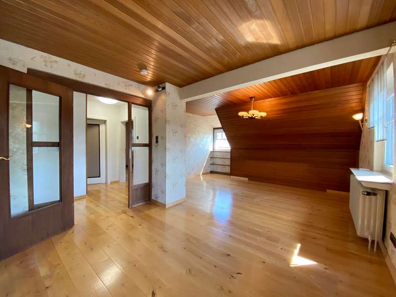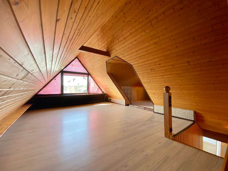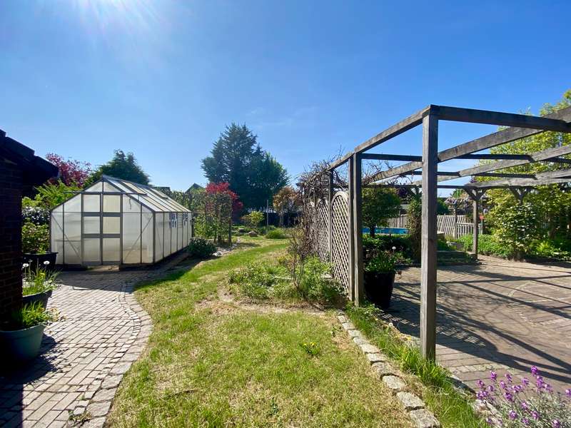 Lots of space, lots of green, lots of quality of life - welcome to your new home. The highlight of the house is the garden, a special retreat: lovingly landscaped, surrounded by greenery and with plenty of space to relax and garden. Whether on the sunny terrace, looking out over the pond or dipping into the heated pool - everyone will find their favorite spot here. A greenhouse, a garden shed and a well for watering the garden round off the garden. The spacious detached house is situated on a lovingly landscaped plot of approx. 1,062 m² in a quiet yet central location. With approx. 161 m² of living space, this house offers plenty of room for your family. The converted attic offers you an additional area of approx. 35 m². The house was originally built in 1953 and was extended in 1975, when the entire house was completely renovated. On the first floor, you will find a well-designed kitchen and a spacious living room with direct access to the heated conservatory. Thanks to electric shading, this offers a pleasant feel-good ambience even on particularly warm days and is secured by an alarm system. A bathroom and a small storage room or pantry can also be found on this floor. The windows in the living room are fitted with sensors that automatically raise or lower when the sun shines or when it gets dark. Upstairs there are three spacious bedrooms, a second high-quality bathroom with shower and a separate guest WC. You can also access the small balcony from the hallway and the converted loft via a staircase. This offers you plenty of additional space and allows you to use it in different ways. A spacious double garage with electric door is available for your vehicles. The house also offers several utility rooms in an outbuilding as well as a partial cellar with boiler room. It is located on a leasehold property with a remaining term of approx. 27 years. The annual rent is only € 130. There is also the option to purchase the plot. An ideal home for anyone who wants to live in spacious surroundings, close to nature and yet centrally located. I would be happy to present this beautiful house to you in a personal appointment.
