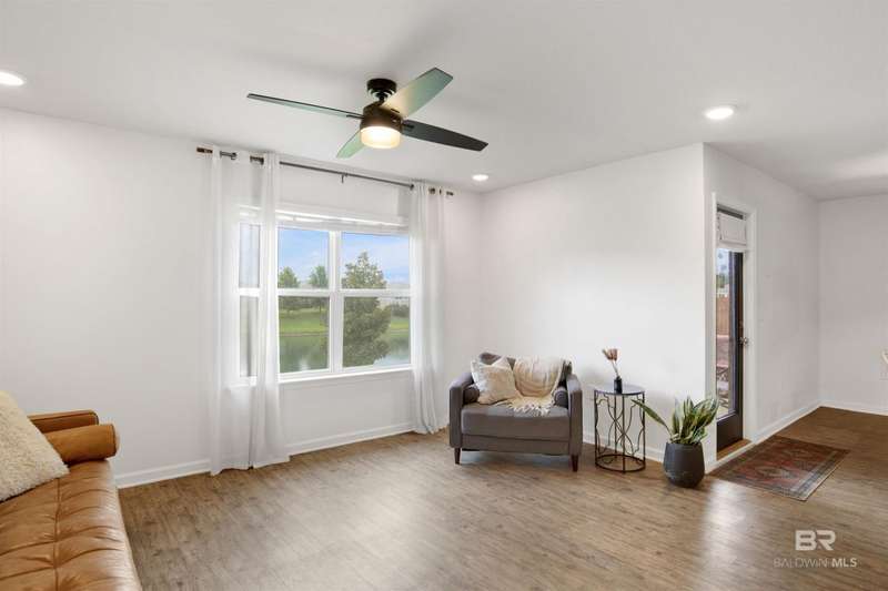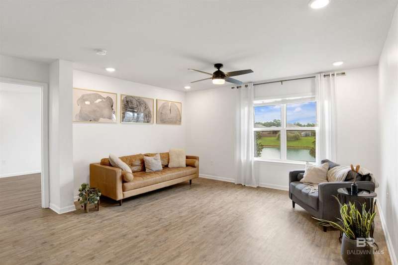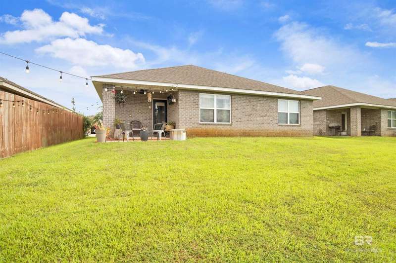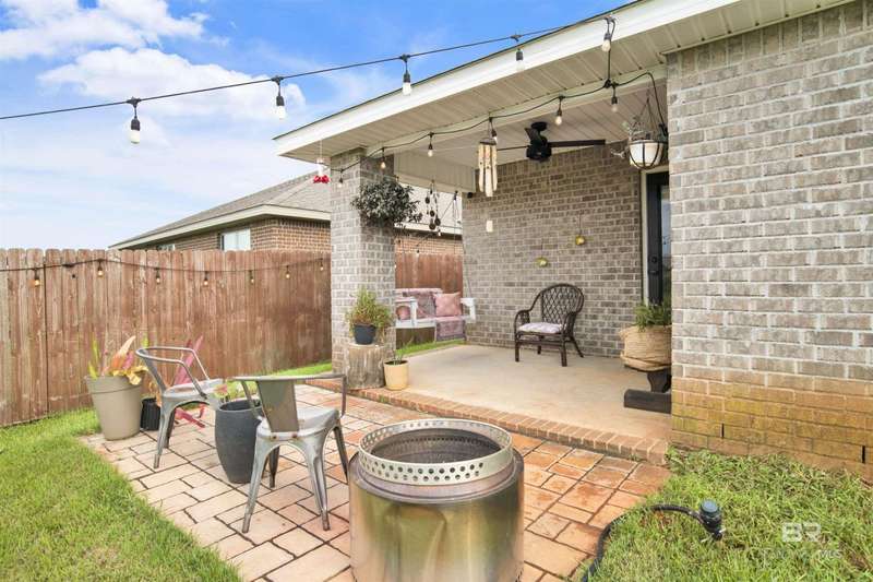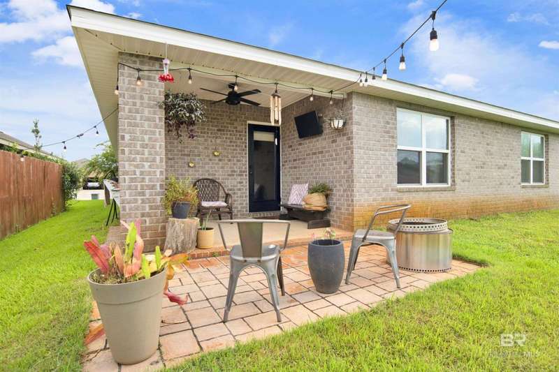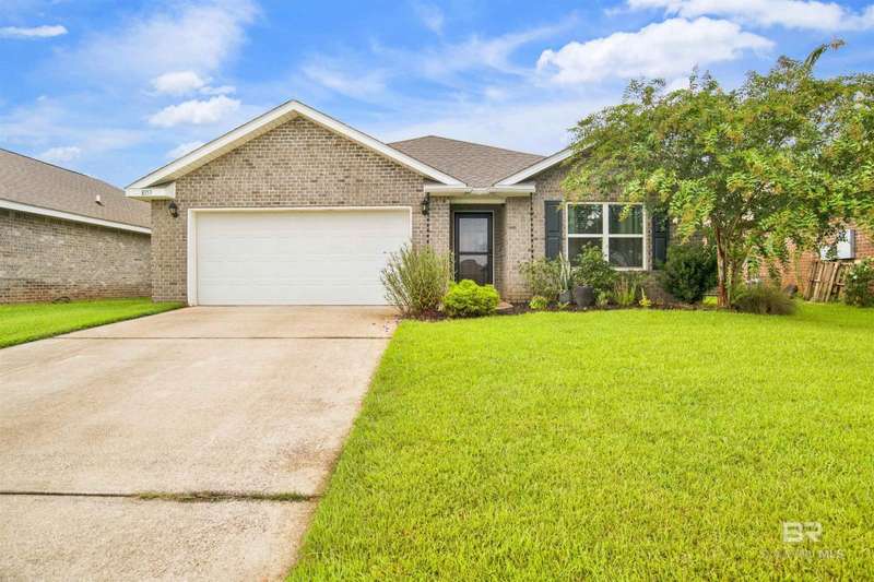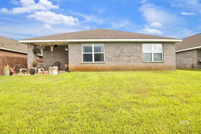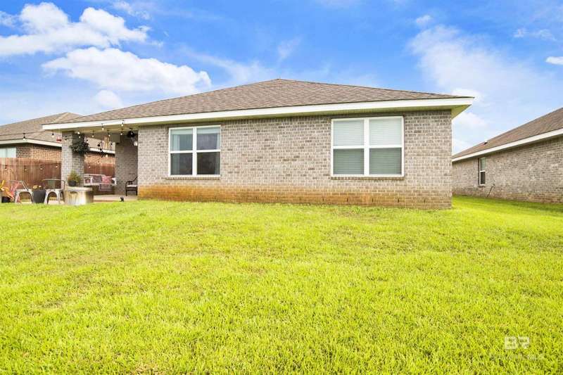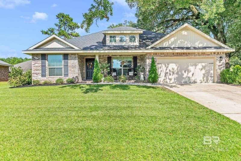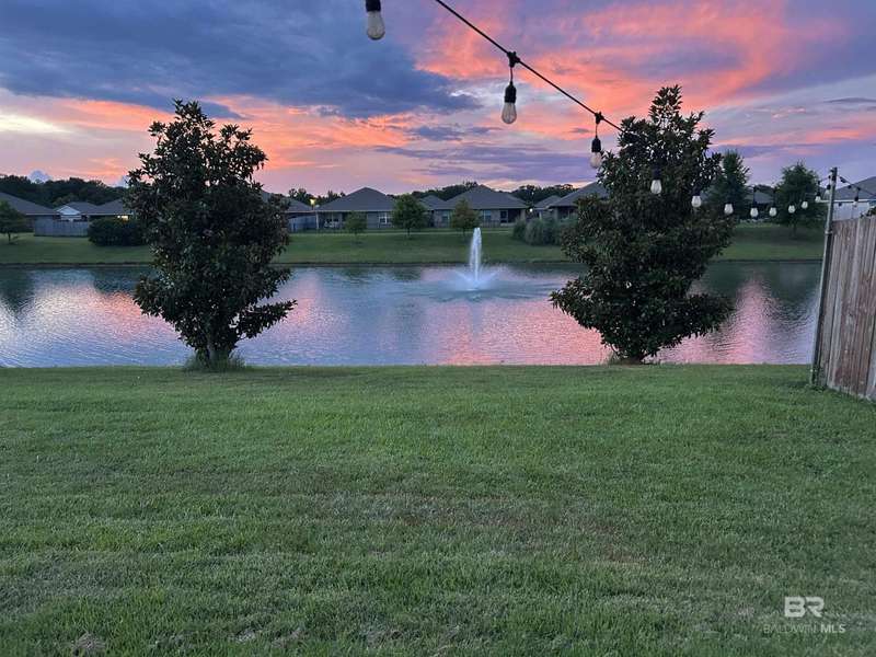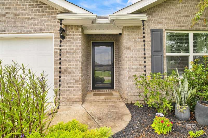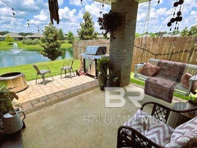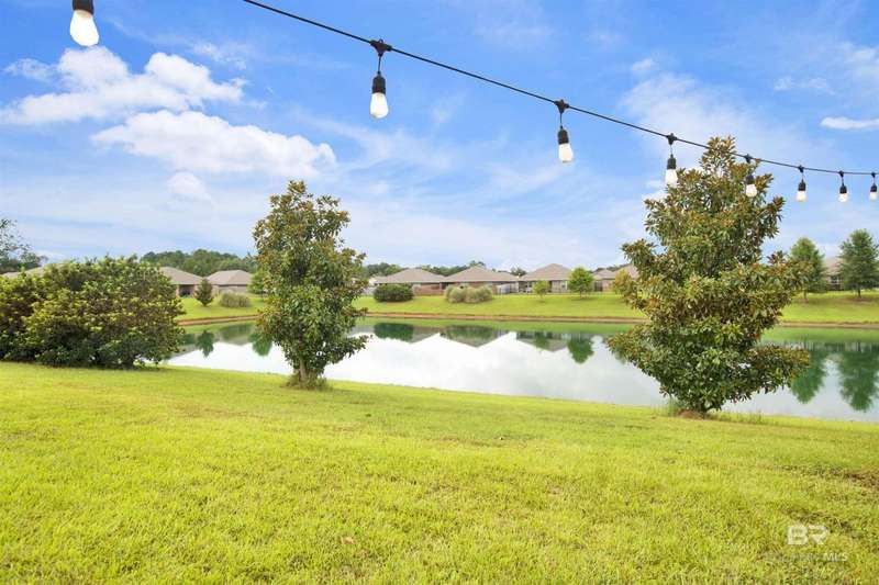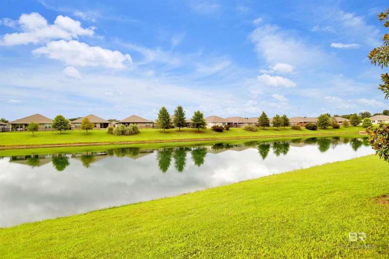 This Gold Fortified all-brick 4-bedroom, 2-bath home is situated on one of the neighborhood's most desirable lots?set directly on the pond with fountain views, just a short walk to the community pool and mailboxes. The neighborhood also features a second pond, adding to the peaceful setting. Updates include fresh interior paint, new LVP flooring in place of carpet, upgraded light fixtures throughout, and a new dishwasher (2025) with updated kitchen faucet and cabinet hardware. The primary suite features new frameless shower doors, a soaking tub, dual vanities, and a large walk-in closet. All bedrooms have ceiling fans. Outdoor living includes a covered patio with fan and TV mount plus an extended paver patio with porch swing?one of the best backyard views in this price range.Inside, the open floor plan provides split bedrooms for privacy. The kitchen offers stainless steel appliances, a walk-in pantry, a large island with bar seating, and a dining area. The laundry room includes custom wood shelving for added storage.Winged Foot residents enjoy two lakes, a community pool, sidewalks, and a rear entrance off Well Road with sidewalkd leading to Trione Park and Daphne East Elementary- connecting you to nature trails, sports fields, the dog park, and an outdoor fitness area. Centrally located in Daphne, the home is minutes from Target, Aldi, Rouses, and restaurants.Seller is a licensed real estate agent in Alabama. Buyer to verify all information. Buyer to verify all information during due diligence.