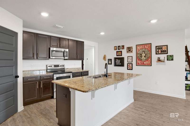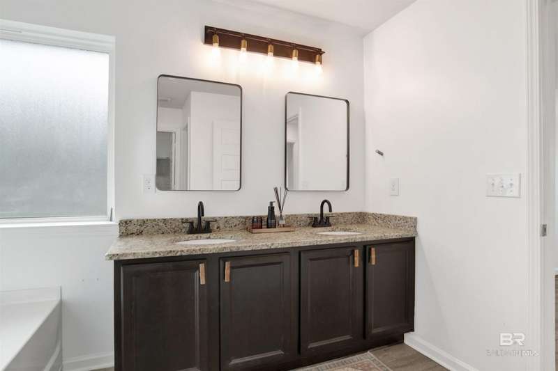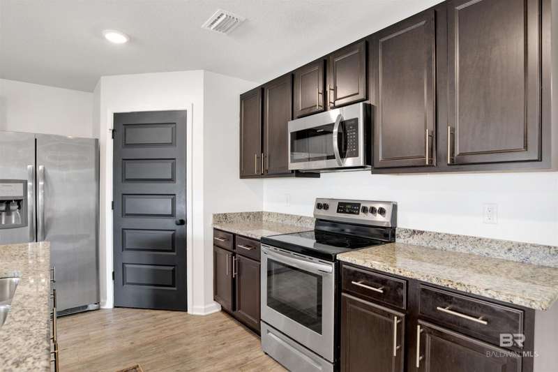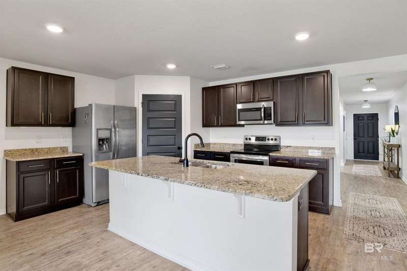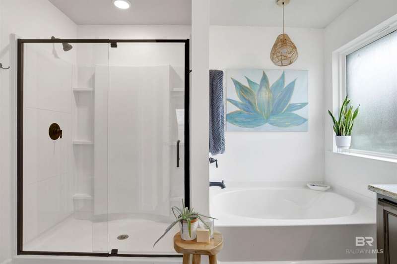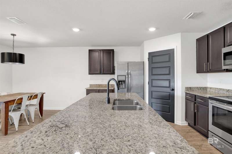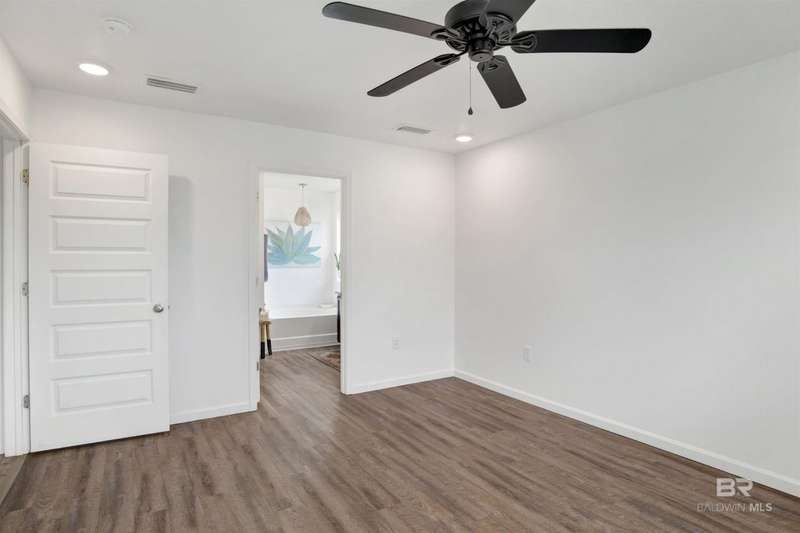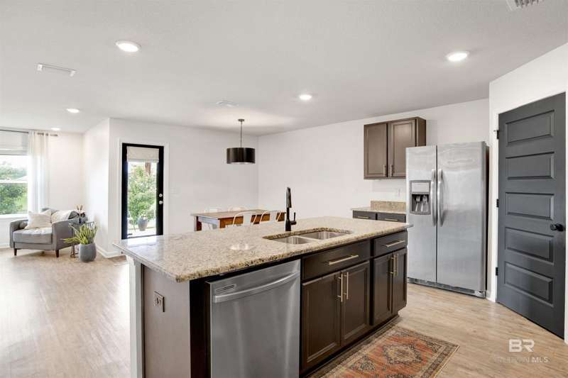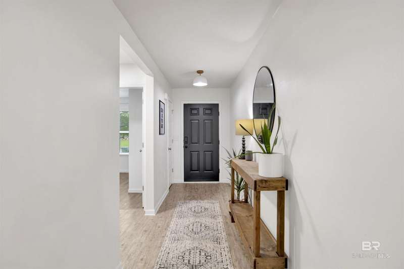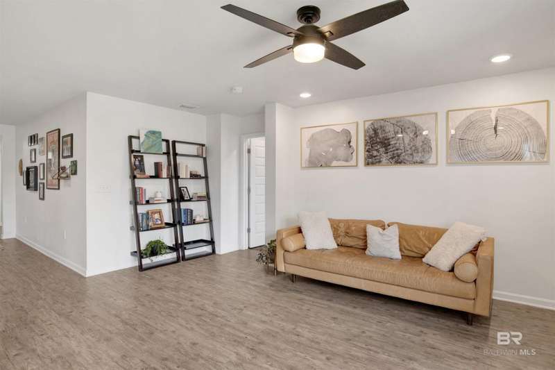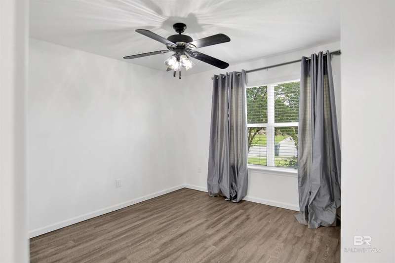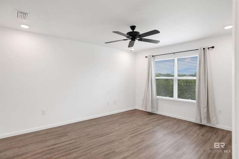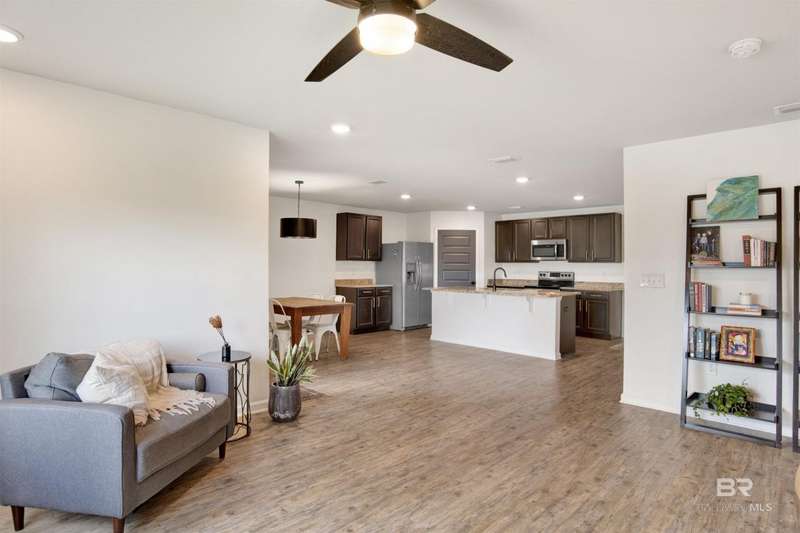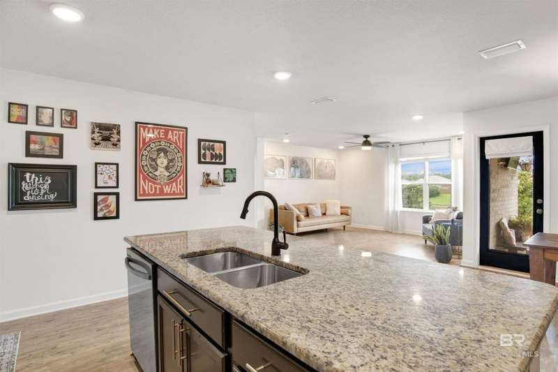This Gold Fortified all-brick 4-bedroom, 2-bath home is situated on one of the neighborhood's most desirable lots?set directly on the pond with fountain views, just a short walk to the community pool and mailboxes. The neighborhood also features a second pond, adding to the peaceful setting. Updates include fresh interior paint, new LVP flooring in place of carpet, upgraded light fixtures throughout, and a new dishwasher (2025) with updated kitchen faucet and cabinet hardware. The primary suite features new frameless shower doors, a soaking tub, dual vanities, and a large walk-in closet. All bedrooms have ceiling fans. Outdoor living includes a covered patio with fan and TV mount plus an extended paver patio with porch swing?one of the best backyard views in this price range.Inside, the open floor plan provides split bedrooms for privacy. The kitchen offers stainless steel appliances, a walk-in pantry, a large island with bar seating, and a dining area. The laundry room includes custom wood shelving for added storage.Winged Foot residents enjoy two lakes, a community pool, sidewalks, and a rear entrance off Well Road with sidewalkd leading to Trione Park and Daphne East Elementary- connecting you to nature trails, sports fields, the dog park, and an outdoor fitness area. Centrally located in Daphne, the home is minutes from Target, Aldi, Rouses, and restaurants.Seller is a licensed real estate agent in Alabama. Buyer to verify all information. Buyer to verify all information during due diligence.
