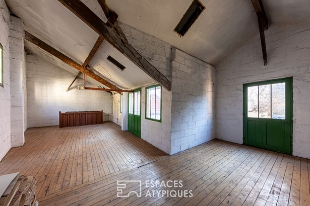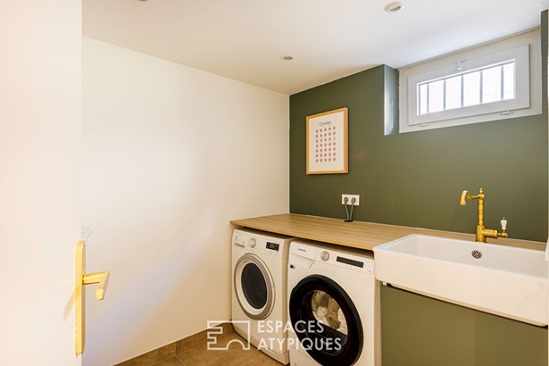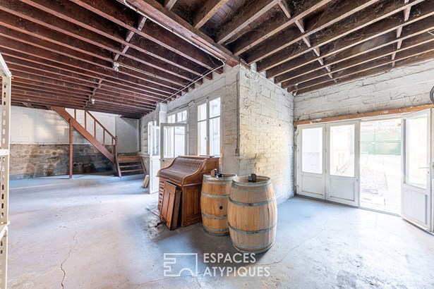 The layout of this house is surprisingly practical and suggests a magnificent family layout: the mezzanine houses, among other things, a laundry room (a favorite) and a wine cellar. A rare asset: the workshop to reinvent Behind the house, a very large workshop on two levels leaves room for a multitude of projects: