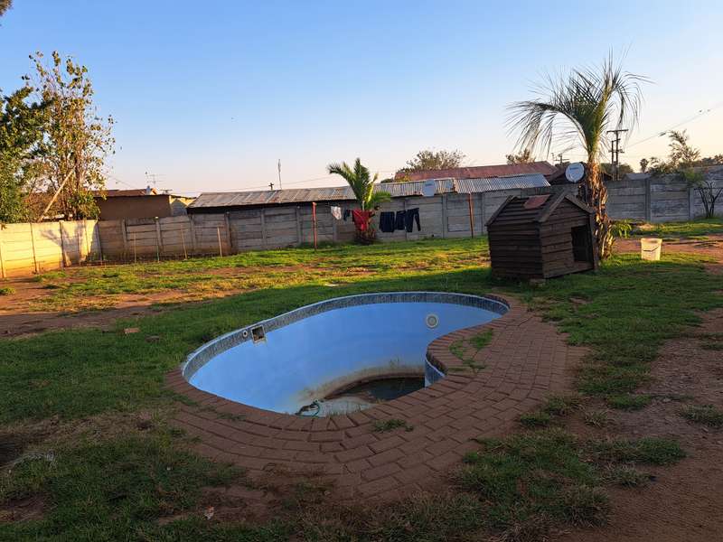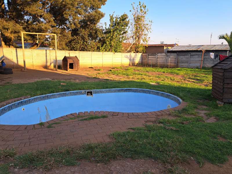 On this 1091m2 property you will find a face brick, tatched roof house. The house consisting of - 3 bedrooms - Kitchen - Lounge - 2 bedrooms on ground floor - Bathrooom on ground floor - 3rd bedroom on second floor - Swimming pool Pre paid Eskom. Municipal water. Property is walled with pre fab walling. Property have potential, but need some tlc