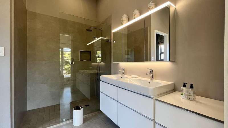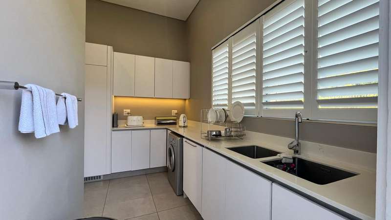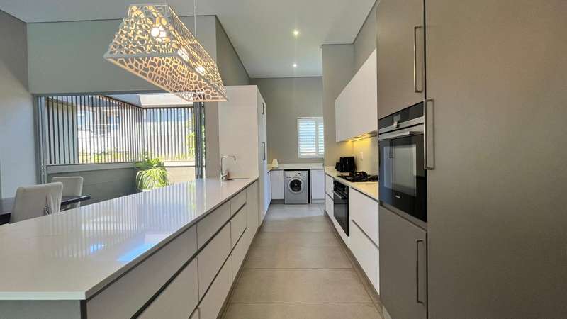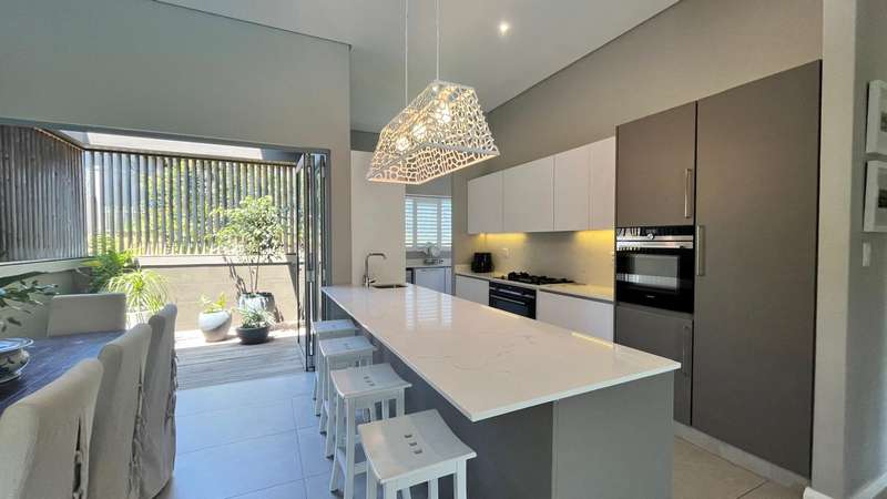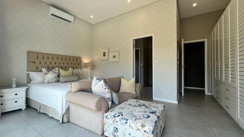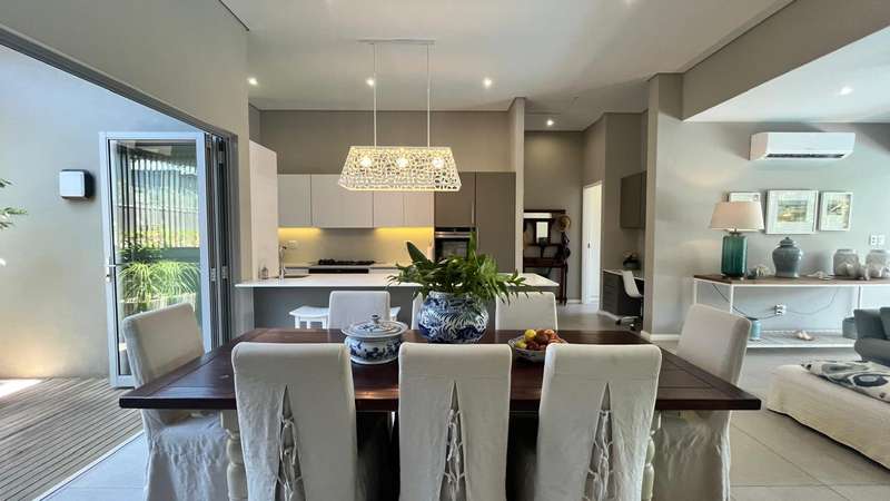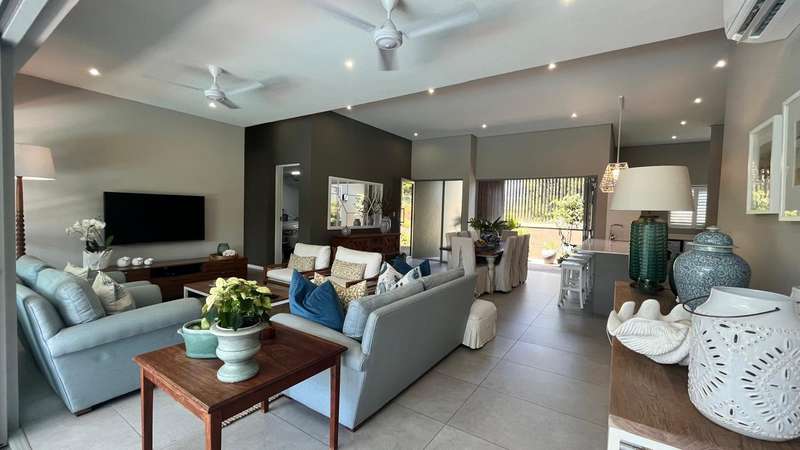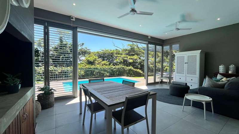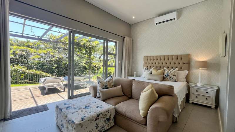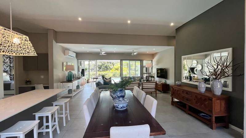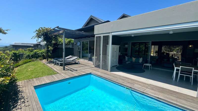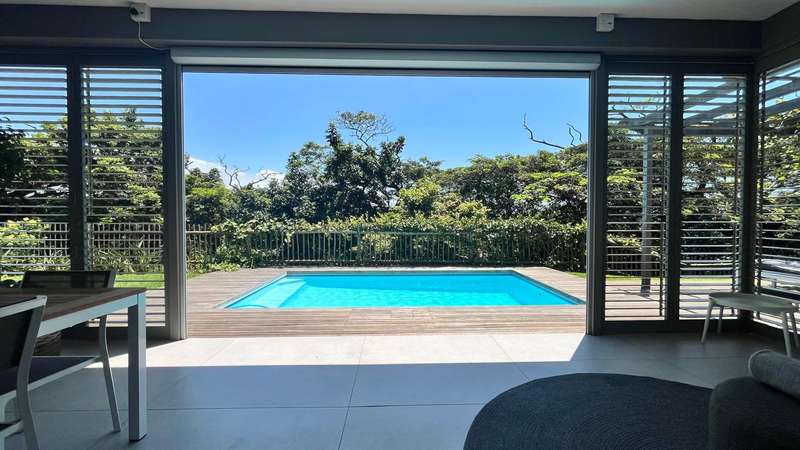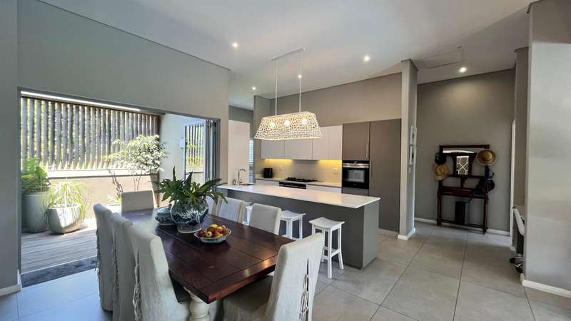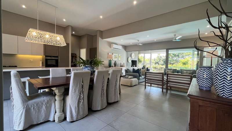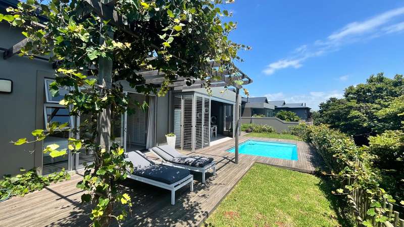 This stunning 4-bedroom home in Simbithi Eco Estate, is a masterclass in sophisticated living. The interior boasts a sleek, open-plan design that effortlessly combines living and entertainment spaces. Sliding doors open up to a sprawling deck and pool area, complete with lush gardens and distant ocean views - perfect for relaxing and entertaining. The modern kitchen is a chef's dream, with high-quality cabinetry and a discreetly positioned scullery area. Three luxurious en-suite bedrooms, all located on the lower level, offer the ultimate in comfort and convenience. The spacious master suite features a freestanding bath and direct access to the outdoor area. A self-contained flatlet above the double garage provides flexible accommodation options for guests or extended family. With air conditioning and fans throughout, this beautiful home offers year-round comfort. And, with its picturesque setting and golf course views, you'll feel like you're on vacation every day. HOA Levy - R3 450 BC Levy - R1 882 Rates - R3 958