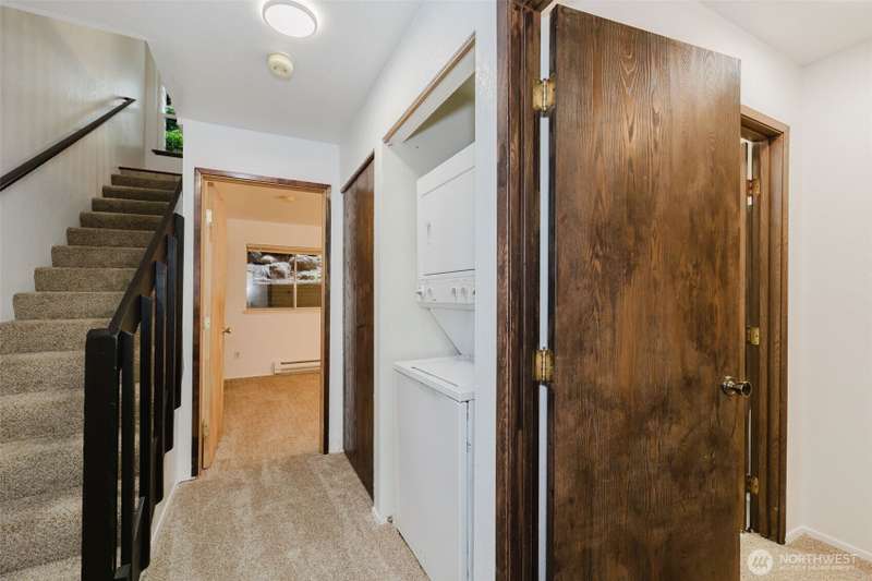New paint, new carpet, new price!!! Together with new appliances (dishwasher and stove with hood) and a pre-inspection make this home move in ready! Spacious 2-bed, 1.75-bath condo with a smart two-story layout. Main level features kitchen, dining room, powder room, living room with wood-burning fireplace, and private balcony overlooking greenspace. Downstairs offers two peaceful bedrooms—including a primary with private terrace—two ¾ baths, and convenient laundry. Enjoy a secluded feel in a well-established community close to PSNS, amenities, and transit. Great opportunity for first-time buyers and investors. Seller to pay off special assessment at closing.