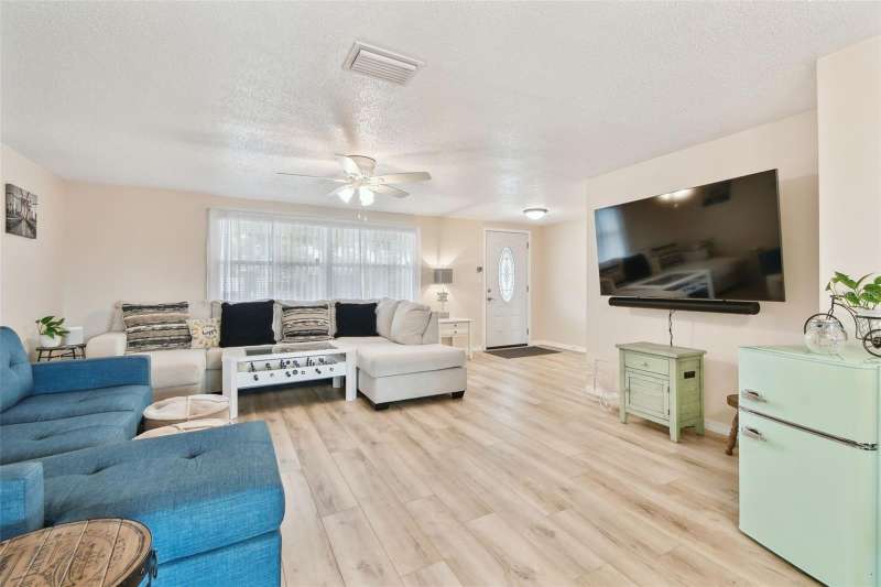 Welcome to your dream home! This charming 2-bedroom, 3-bathroom single-family residence, nestled in the desirable Colonial Hills neighborhood, offers 1,399 sqft of well-maintained living space with brand new LVP flooring. This home features an open and inviting floor plan, ideal for entertaining guests or enjoying cozy evenings at home. Step inside to discover a bright and airy interior with ceiling fans, modern fixtures, and a functional layout. The oversized kitchen flows seamlessly into the living and dining areas, creating a warm and welcoming atmosphere. All Stainless Steel appliances included. Enjoy the Florida lifestyle with a spacious screened-in porch and a fully fenced backyard, perfect for outdoor relaxation, barbecues, or pets. The home also includes a 2-car garage with a full bathroom. Located just minutes from downtown New Port Richey, this property offers easy access to vibrant local restaurants, shopping, Sims Park, and stunning Gulf Coast beaches like Green Key, Howard Park and Honeymoon Island. With no HOA and a strong rental potential (estimated $1,800+/mo), this home is a fantastic opportunity for homeowners or investors alike. Don’t miss out on this move-in-ready gem in a prime location. schedule your showing today.