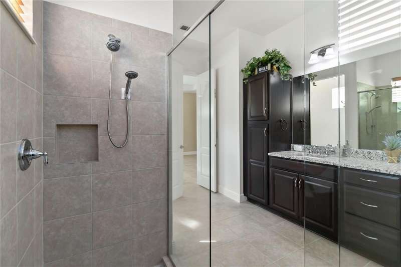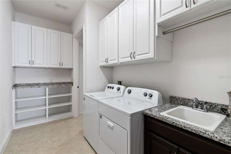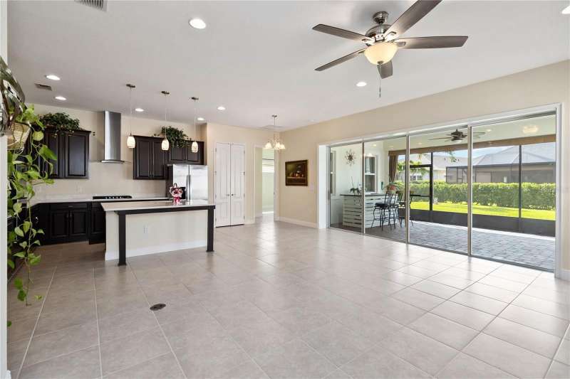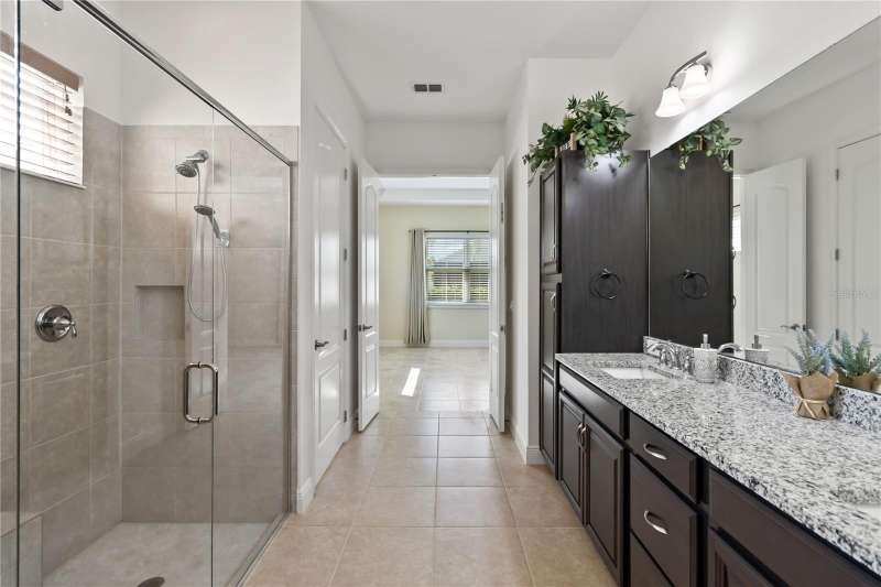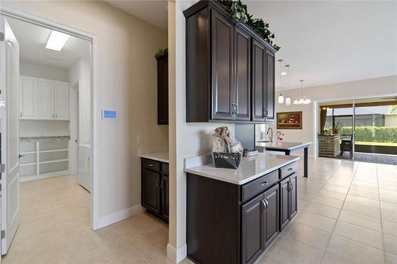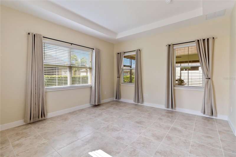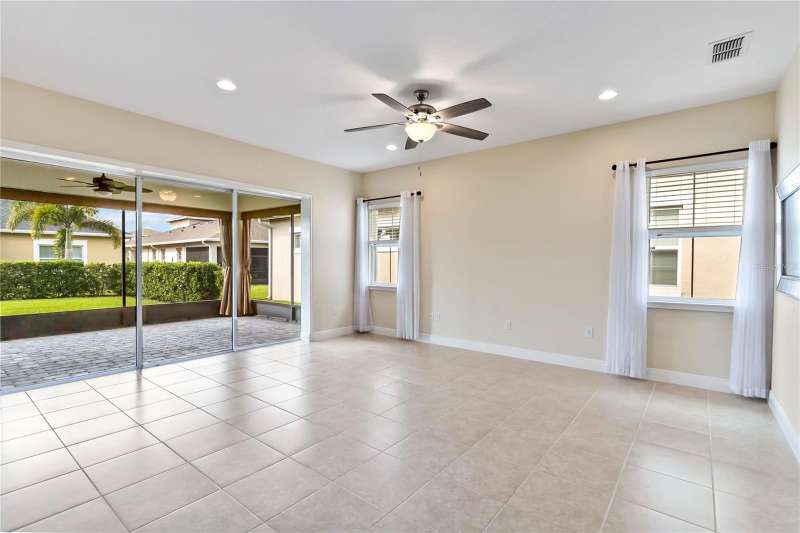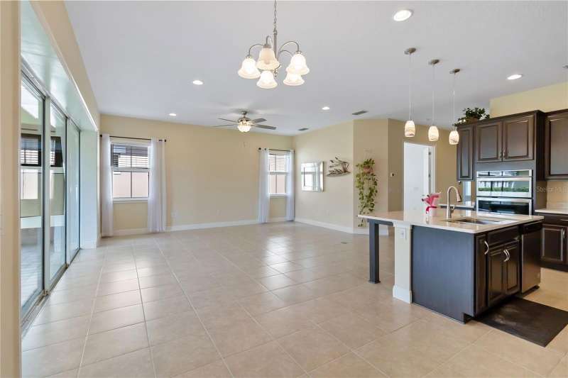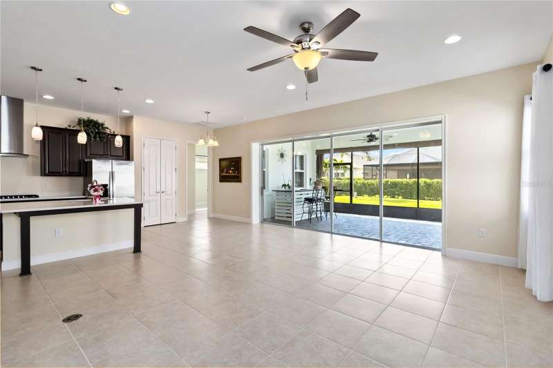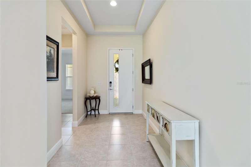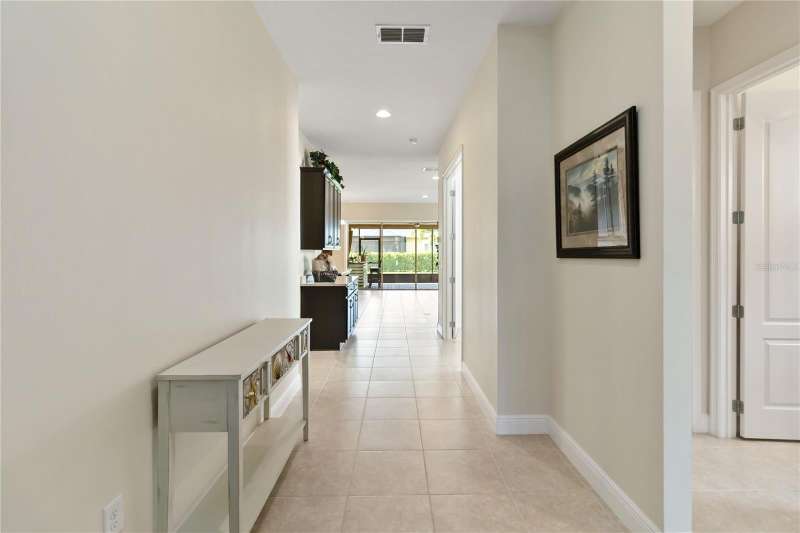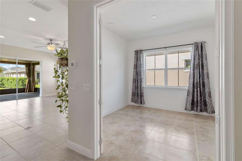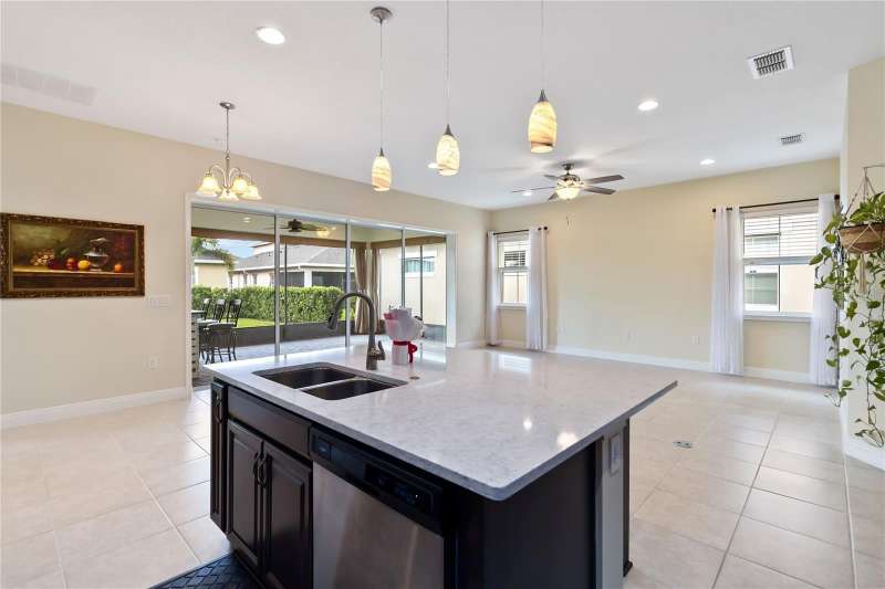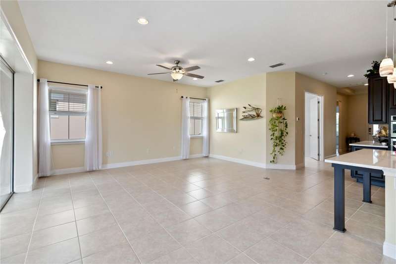 Move in ready! Available is this 3 bedroom, 2 full baths. 2 car garage with covered outdoor living area. 5 years Jones Home, Captiva floor plan in Del Webb Twin Lakes, Saint Cloud. Room 3 is optional as a Den/Office. Exterior newly painted. Tile flooring throughout home including the walk-in closet with custom shelving. Second room has new carpet. Spacious living with 10-foot ceilings and plenty of storage cabinets including an entry drop zone. Laundry room has extra shelving and cabinets as well. The gourmet kitchen has custom quartz countertops and 42" crown molded cabinets. Comes with window treatments throughout and ceiling fans included in the living room and outdoor Lanai. Garage has a newly painted epoxy floor. Property comes with a water softener, tankless water heater and gutters already installed. Landscaping includes palm trees and privacy hedges in both front and back of the home. HOA maintains landscaping. The Del Webb Community has incredible amenities that can be viewed with a visit to this home. Schedule YOUR private showing soon!! **Full Home walkthrough and aerial drone Video available on YouTube." Amenities include a Resort style pool and Lap Pool, and 3rd pool, 20,000 square foot Clubhouse, State of the art Fitness Center, Tennis Courts, Pickle Ball Court, Pontoon Boat available for fishing and/or evening boat rides on Live Oak Lake! The 55+ community has many active and socializing activities to keep you very busy!! All of this in a GREAT gated community located in Central Florida close to Lake Nona Medical City, Orlando International Airport, Theme Parks, and Brevard Beaches nearby! Do not delay making your appointment to view this home today!