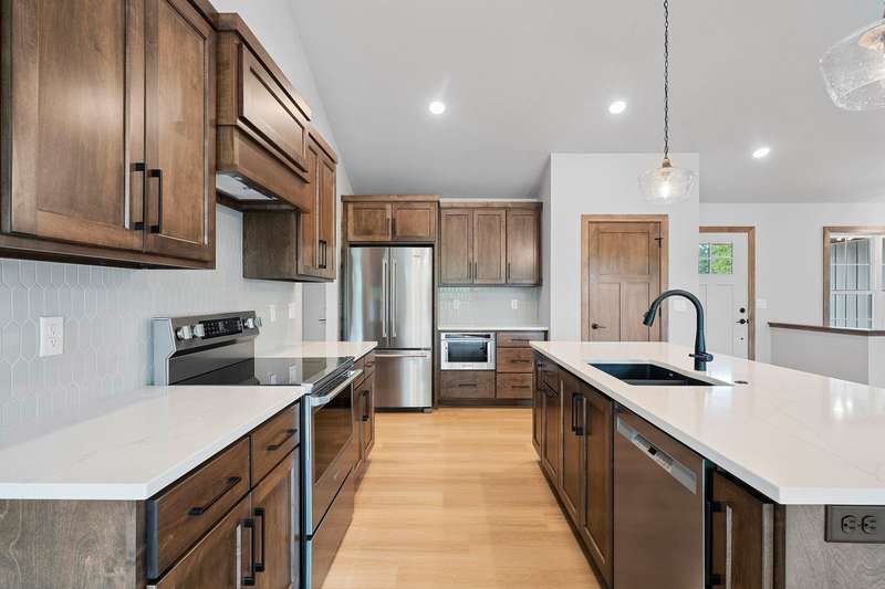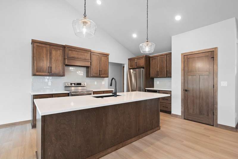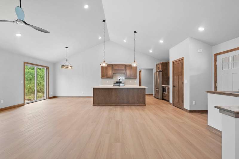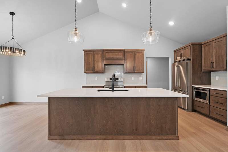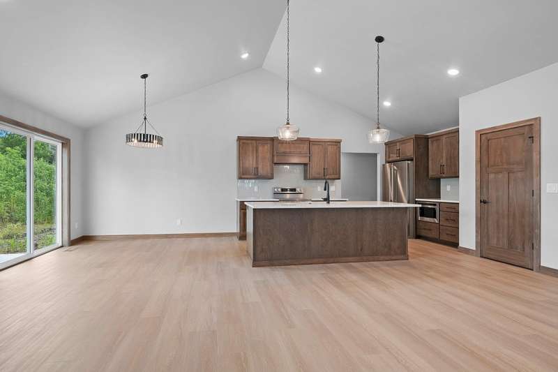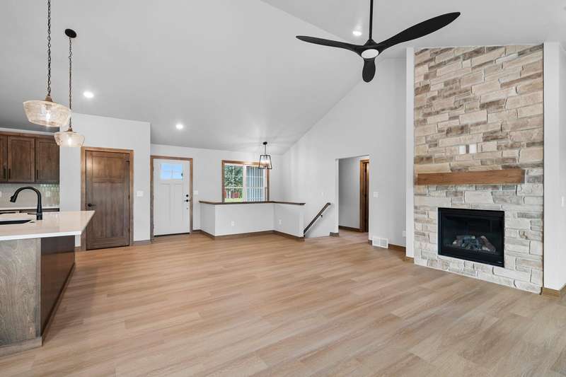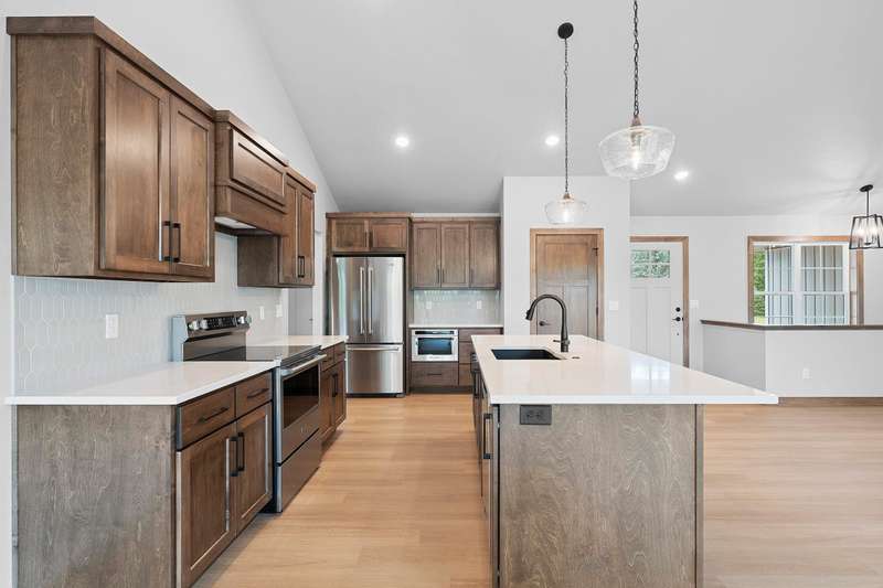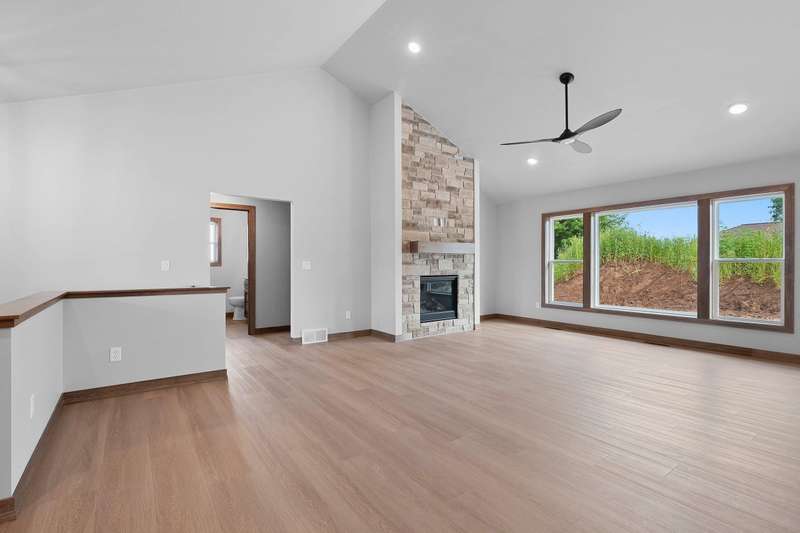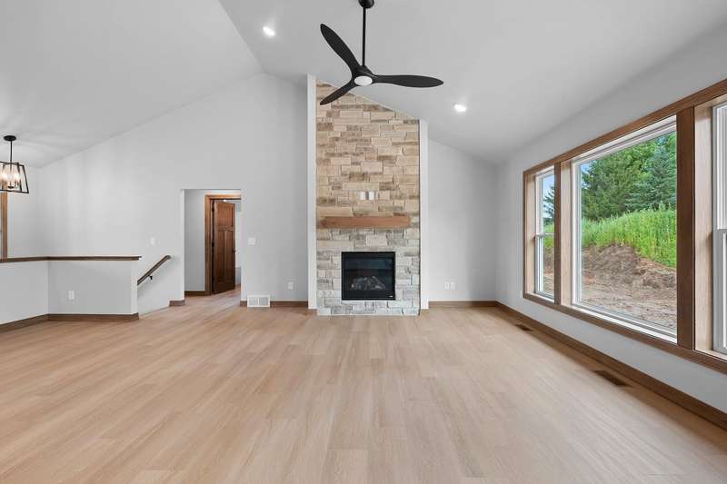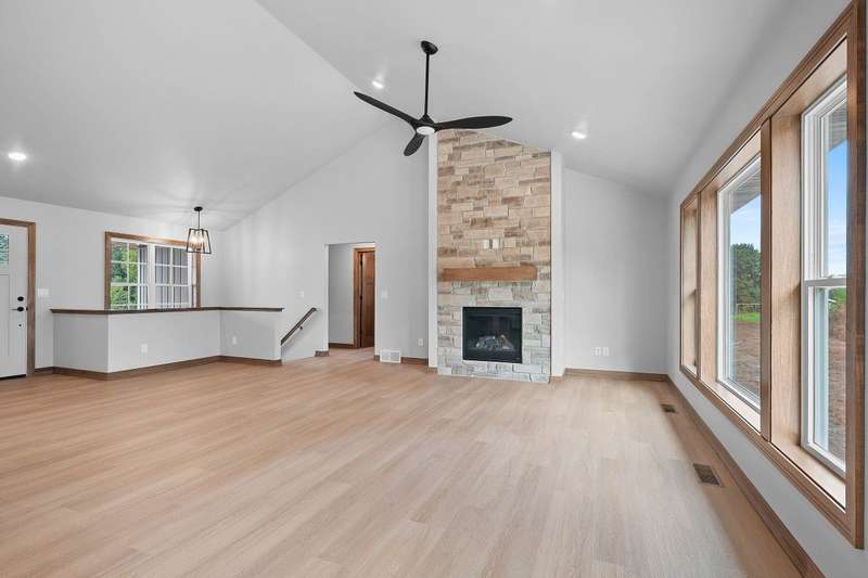 Beautiful new ranch located in a quiet setting. As you step inside, you'll be greeted by the warmth & coziness of the Great Room complete w/ stone fireplace & vaulted ceiling. The welcoming kitchen is impressive w/large center island, quartz counters, tile backsplash & pantry. Relax in the spacious primary suite complete w/tray ceiling, walk-in closet & primary bath w/ dual sinks & walk-in tile shower. You will appreciate the extra space to relax and entertain in the finished LL w/ spacious Rec Rm, 4th Bedroom & Full Bath. Step outside to your own outdoor oasis. The charming patio invites you to enjoy morning coffee or evening barbecues. With a spacious 3-car garage that provides basement access, you'll have all the room you need for vehicles, hobbies & storage. Come see!