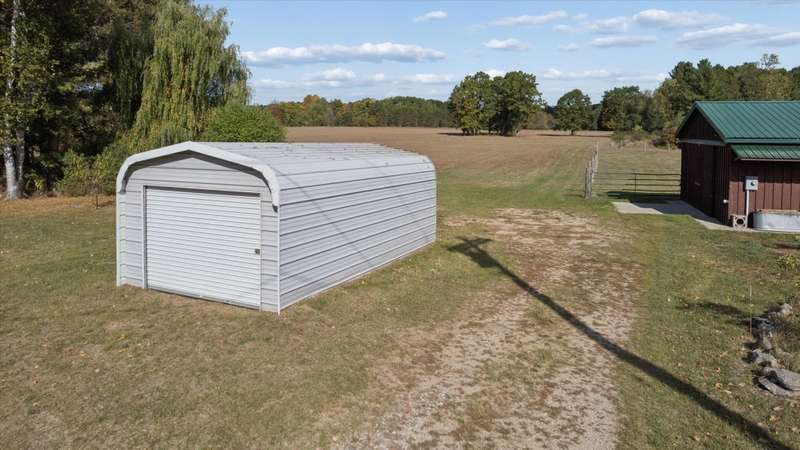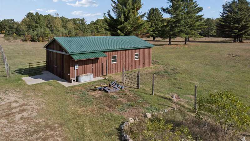 Check out this comfortable farmhouse sitting on 40 acres conveniently between Reed City and Evart. This home and property are perfect for your new hobby farm. Outside you will find 20 acres of field being used for hay for the last several seasons. Just under 10 acres of pasture is set with electric and barbed wire fencing and just waiting for the new animals. The remainder of the property is a mixture of open fields, yard, and woods. Highlighting the outside of the home is the 24x40 barn with its own electric and water source for your animals. The concrete floors inside make it excellent for storing your farming and outdoor toys. A separate metal carport is located close to house. Once you are ready to check out the home you will find a well maintained home which has been fully remodeled inside and out. New utilities and drywall inside and a metal roof and new siding were all part of the 2017 remodel for this home. A new septic tank and drain field were installed in 2023. A custom Amish door is a nice touch in the kitchen adding to the charm of the house. This house and property are perfect for those looking for a smaller home with tons of potential outside. The current owners have been using it as a rental property while farming the land. Call today at 231-250-3750 for your tour.