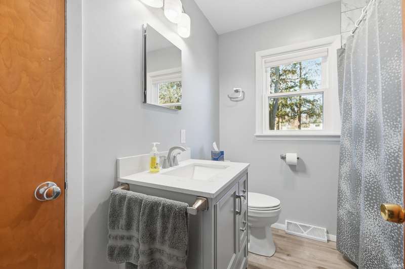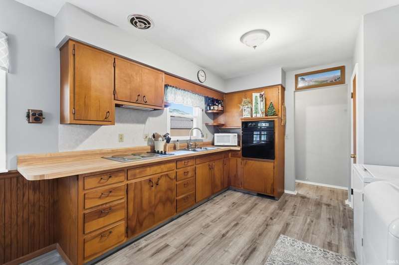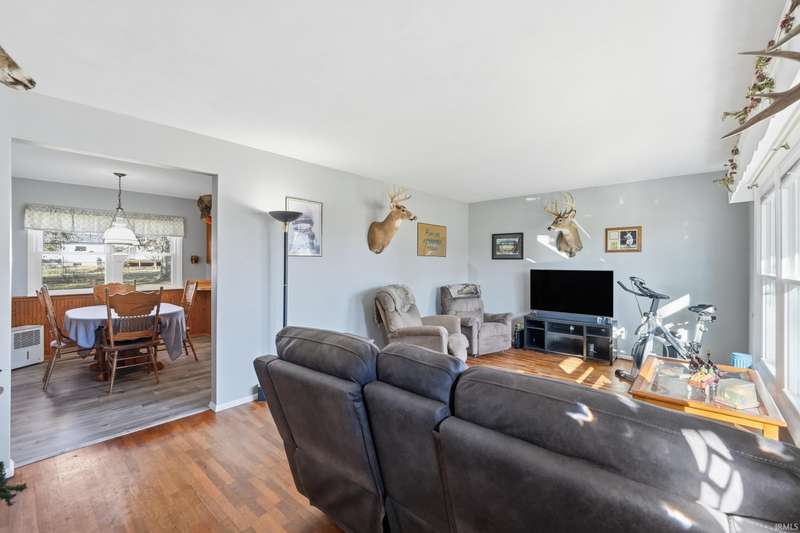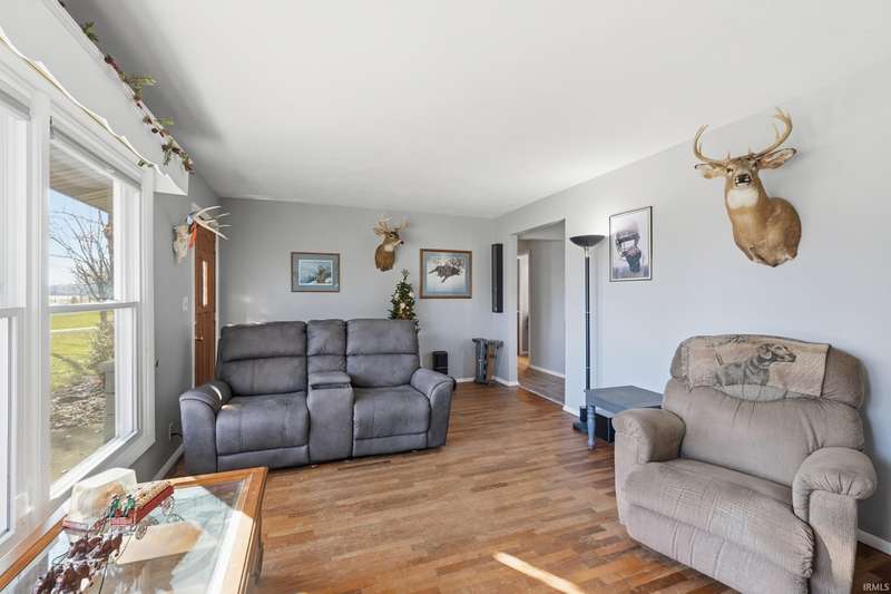 Country feel with the convenience of city limits. This move-in ready home sits on just over half an acre and offers many great updates inside and out! The spacious living room boasts lots of natural light and original hardwood floors which flow through much of the home. The kitchen features new flooring which carries into the eat in area. Both full bathrooms have been updated with new flooring, fresh paint and a tiled shower. Designed for added comfort, two of the original bedrooms were combined to create a spacious primary bedroom. The space offers versatile potential while still retaining the option to easily restore the home to its original three-bedroom layout. Outside you'll find ample yard space, a generous front patio, stoned fire pit area to enjoy any time of year and a large shed perfect for outdoor storage. Home boats a metal roof, all new windows with transferrable warranty, all new plumbing in the remodeled larger full bath, new overhead garage door, new stone, underground electric dog fence and so much more. You're going to want to see this one before it's gone!