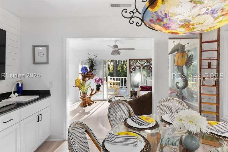 Colorful, newly remodeled, and full of Hilton Head charm, this 3-bedroom, 2.5-bath home is the ideal island getaway or rental investment. Centrally located in the luxurious golf and beach community of Palmetto Dunes, the home is just a short stroll to the beach and an easy walk to the Omni Resort. Step inside to find a bright, open, and airy floor plan with modern coastal design touches throughout. The stylish kitchen features stainless steel appliances and a chic backsplash, while the living area opens to tranquil lagoon views. Enjoy the convenience of an outdoor shower, perfect after a day on the beach. This home is in excellent condition and loaded with updates: new roof, new HVAC condenser, and polybutylene plumbing replaced. Sold fully furnished, its currently on the short-term rental market and shows like a model home. Whether you're looking for a vacation escape, a rental property, or a second home, this move-in-ready gem in Palmetto Dunes is a rare find!