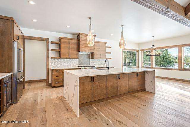 WELCOME TO ''THE GLADES'', RATHDRUMS NEWEST NEIGHBORHOOD OF LUXURY HOMES ON 5 ACRE PARCELS! Mountain Modern style home, built by award winning builder 3 Bed/ 3 Bath 3250 SQ FT luxury home with light & bright interior features main level living w/ bonus room. Special features include: double layer cedar facia, beam and shingle accents, masonry exterior finishes, covered front entry, solid core wood entry door, large kitchen, island, quartz countertops with full tile backsplash, walk-in pantry, stainless steel appliances, formal dining, den, powder room, floor to ceiling masonry gas fireplace, hardwood floors with tile accents, spacious master w/ mud set tile shower & soaking tub in master bath, solid core doors, large laundry/mud room, covered patio, paved driveway, landscaping, sprinklers, plus 2500 sq ft SHOP! TREED PARCELS, CLOSE TO TOWN, PAVED ROADS, SHOPS/BARNS/LIVESTOCK OK!