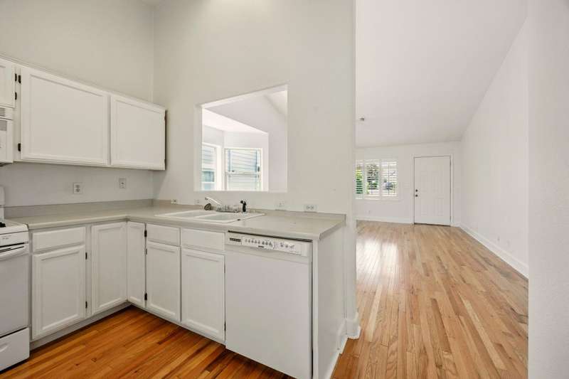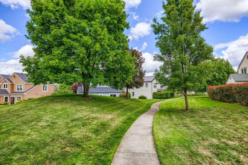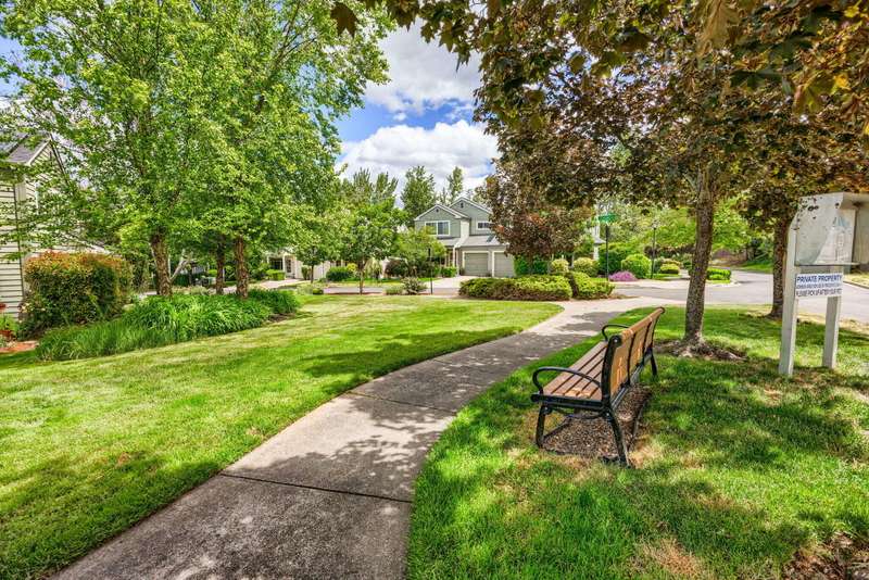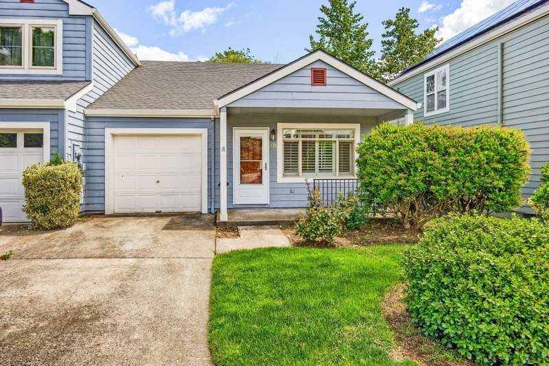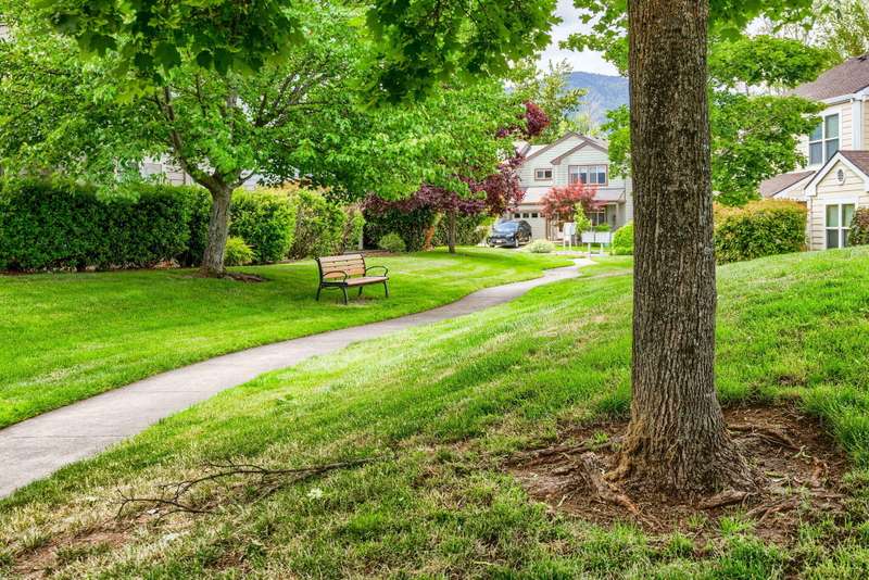 Charming single-story townhome with an open floor plan, vaulted ceilings, and oak hardwood floors throughout. The bright dining area features a bay window, and the kitchen opens to a covered deck—perfect for BBQs with bar table & stools. The primary bedroom includes a private deck surrounded by trees and lush vegetation with mountain views. A brand new Heat Pump HVAC is just installed. Enjoy the convenience of an attached garage with built-in shelving, washer, and dryer. The well-managed HOA ($173/month) covers front yard maintenance and beautifully maintained common areas, including open green spaces, nicely designed quiet walking paths with peaceful mountain views, wetland and guest parking. Ideal for first-time buyers, down-sizers, or investors. Located conveniently in a neighborhood near shopping, the YMCA, and a planned 6 acre city park with direct access. Quick access to I-5 makes commuting easy. Move in ready!