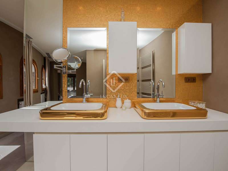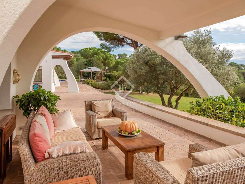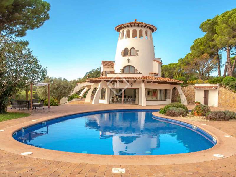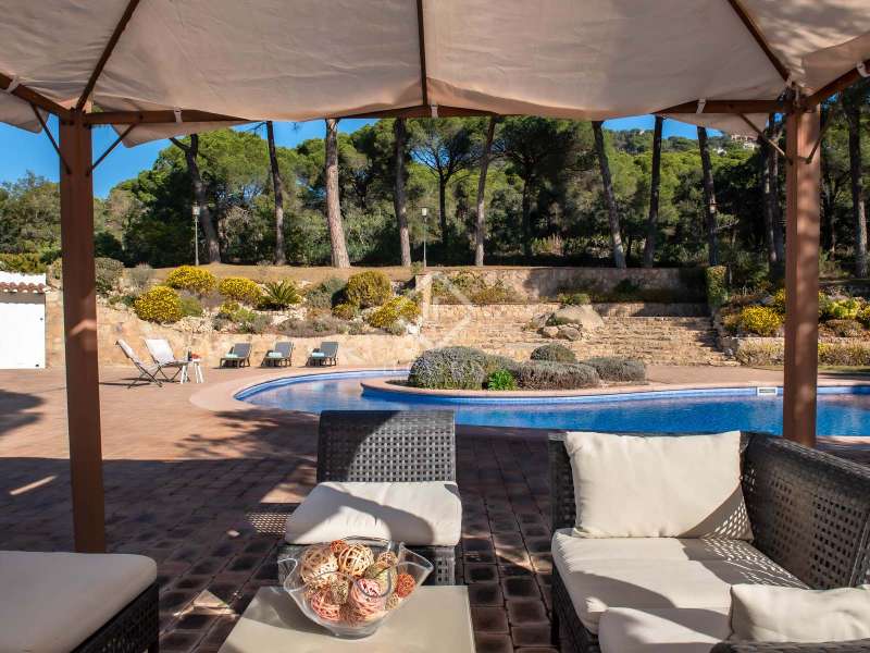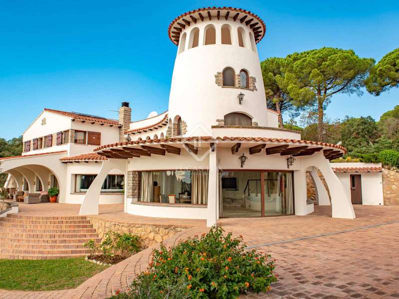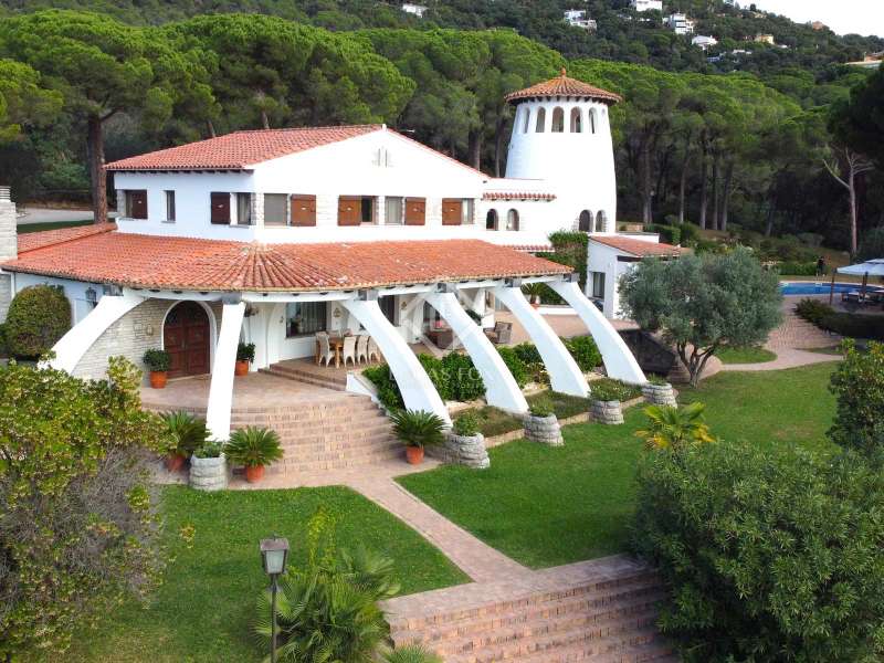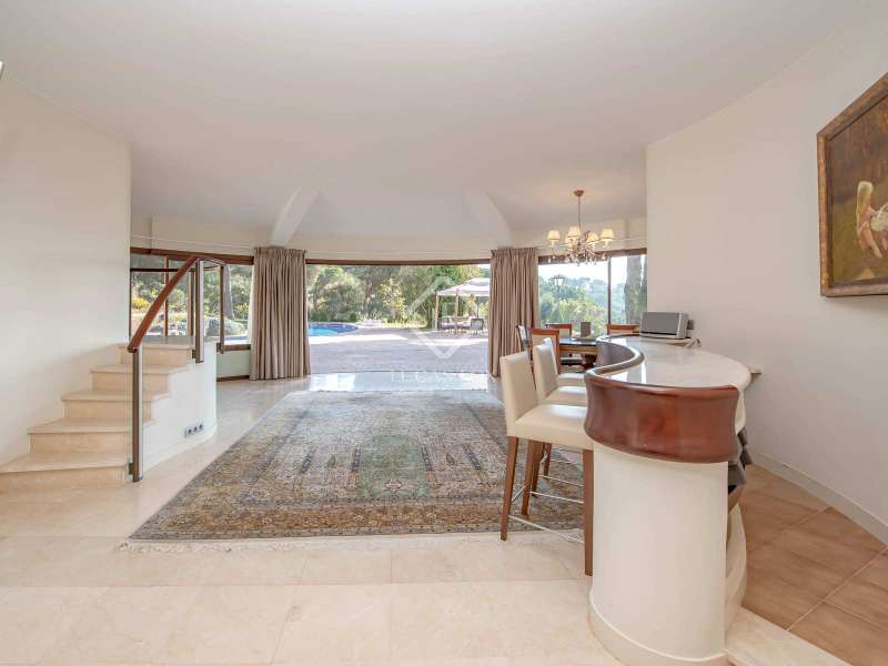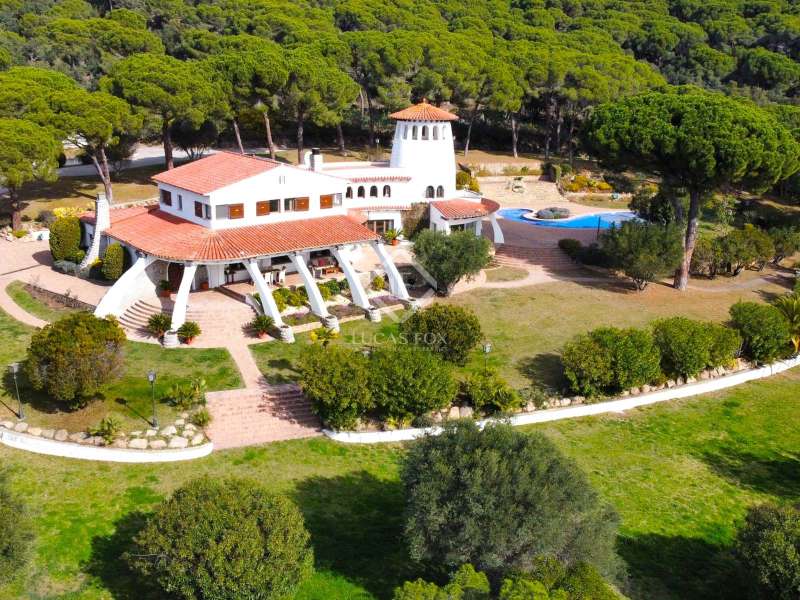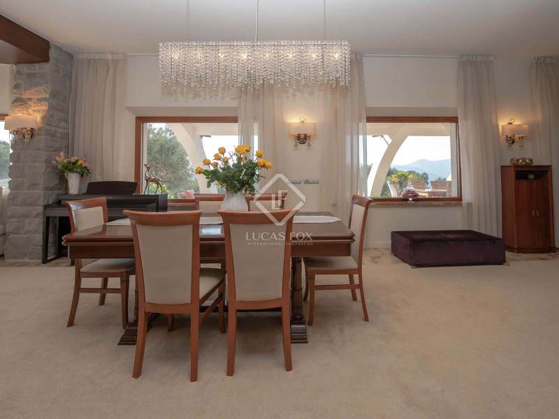 This majestic estate was built in 1970, but was completely renovated in 2011. It is located very close to the centre of the town of Santa Cristina d'Aro and a few minutes from some of the best beaches on the Costa Brava, such as Sant Pol beach. in S'Agaró or Sa Conca cove, in Platja d'Aro. It sits on a plot of 1.6 hectares and has an impressive and sunny garden, a swimming pool area of great beauty, surrounded by nature and tranquility. The manicured lawn and numerous native trees surround the magnificent estate, the pool area, the large terraces and the outdoor areas that offer a wide variety of spaces to relax and have fun with family and friends. The restoration of the house beautifully combines all the modern luxuries with the original character of the house, with large open spaces and contemporary design. All the rooms and spaces are imbued with character, with a fusion of traditional elements such as arches, stone and wood with elegant finishes and modern accessories in the different rooms of the house. The estate is made up of several independent buildings: the main house with most of the constructed area and the current service staff house, attached to the main house, which can be fitted out for guests. Both are connected to each other. In addition to the old stables, which are currently used as storage rooms, a large garage and orchard with a greenhouse are offered as independent buildings that form part of the estate. The main house is distributed over three floors connected by stairs, with beautiful day spaces, all with contemporary design and original details that are attractive and comforting. The main or ground floor has a majestic and spacious hall, a large day area made up of several living rooms, a winter room with a fireplace, a dining room, an office, a reading space and a summer or party room. All these rooms have access to the beautiful and large green garden, the spectacular pool area, the large porch with outdoor dining area and various chill-out areas. In addition, this floor has a full guest bathroom and an equipped kitchen. The kitchen is connected to the current service staff house, or guest house, which has a spacious living room, an equipped kitchen, a complete bathroom and two double bedrooms. The second floor consists of four double bedrooms, three full bathrooms and the master bedroom with a dressing room, private terrace and a large full and private bathroom. Finally, on the third floor, there is a double guest bedroom with private bathroom, large terrace and independent access. It should be noted that the property has a home automation system to control all the facilities of the house, alarm, heating, internet and a legalized water well for irrigation. Contact us for more information or to arrange a visit.