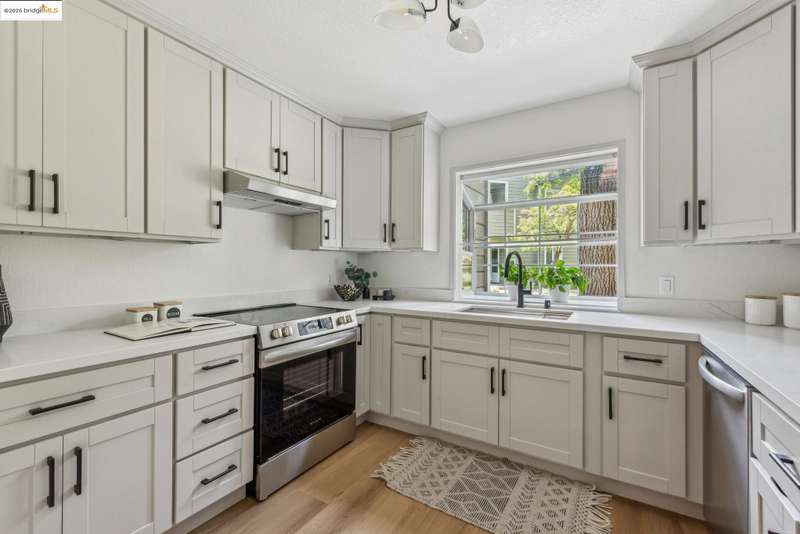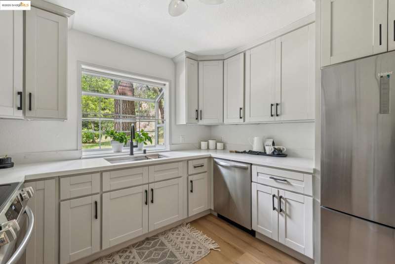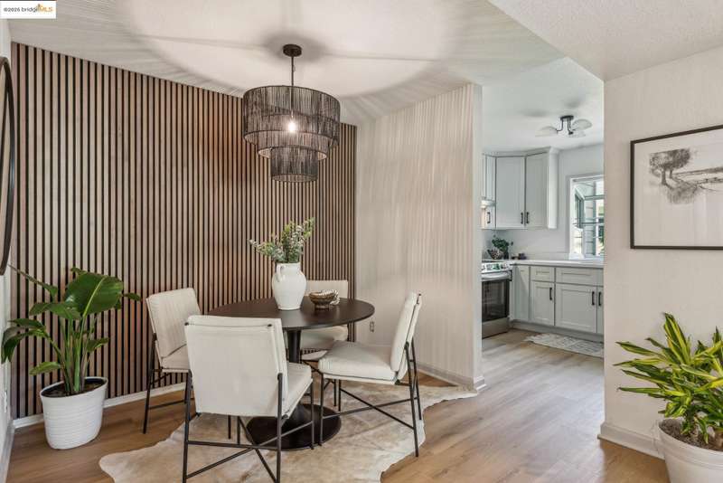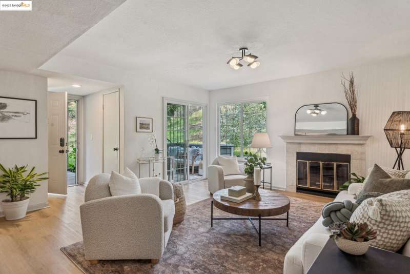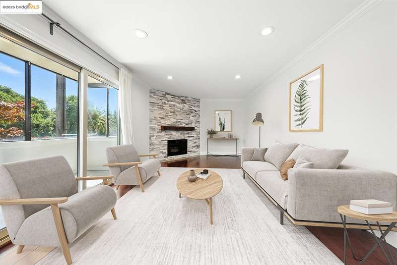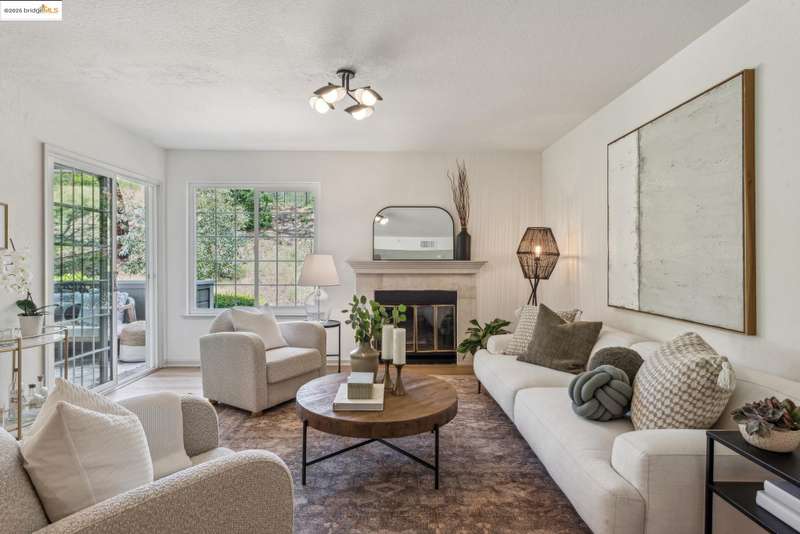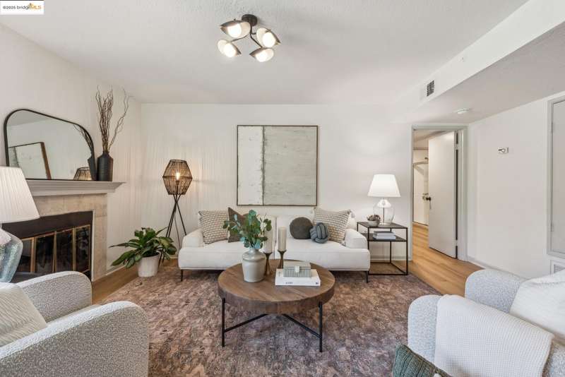 Step into this luxurious, design-forward home, where new finishes and warm white oak LVP flooring flow throughout. The open flow floor plan connects the living room with fireplace and dining area to the kitchen in and an easy indoor-outdoor circular connection to the oversized entertainment patio. This is only the beginning of your new home’s wonderful features. The kitchen is a showpiece, with an all-new appliance suite and sleek upgrades. The impressive dining area has a feature panel wall and stunning designer lighting that rounds out the common spaces. An impeccably refurbished bedroom offers a personal retreat, complete with custom overhead lighting, and direct access to a second patio for seamless peace and calm offered by the lush greenbelt grounds. The updated bathroom adds a spa-like touch, and connects to a walk-in closet. The in-unit laundry with brand new appliances ensures everyday ease. Move-in ready and freshly upgraded throughout, this home has its own dedicated parking space and is part of a well kept community featuring a pool, sauna, tennis courts, playground and lush greenbelt grounds for resort like living every day. The HOA covers a wide range of maintenance and facility expenses.