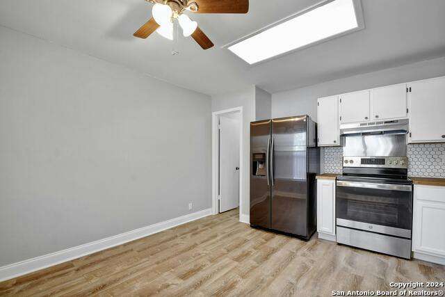 Take a look at this charming 3-bedroom, 2-bathroom spacious home which offers 1,328sqft of comfortable living space. Built in 1994, this single-story residence sits on a 0.12-acre lot with mature trees, featuring a beautifully landscaped front yard and a large backyard perfect for outdoor activities. Inside, the home boasts brand-new laminate flooring, new kitchen countertops, and other moderate updates throughout. The spacious living room, cozy dining area, and bright kitchen with a breakfast nook create a warm and inviting atmosphere. The primary bedroom includes a walk-in closet and en-suite bath, while two additional bedrooms provide flexibility for a guest room, home office, or kids' room. A one-car garage, ceiling fans, and included appliances such as a refrigerator, stove/range, dishwasher, and garage door opener add to the convenience. Located in the Northside School District, this move-in ready home is perfect.
