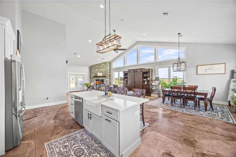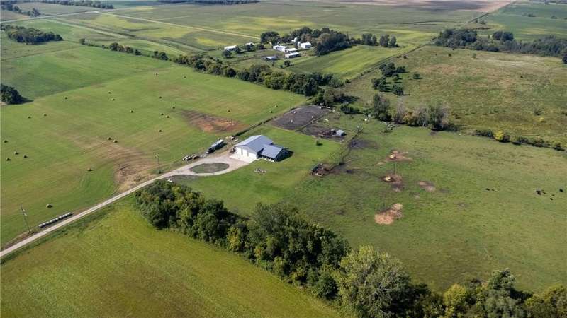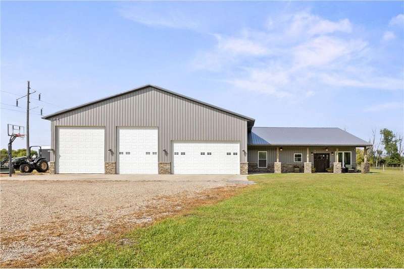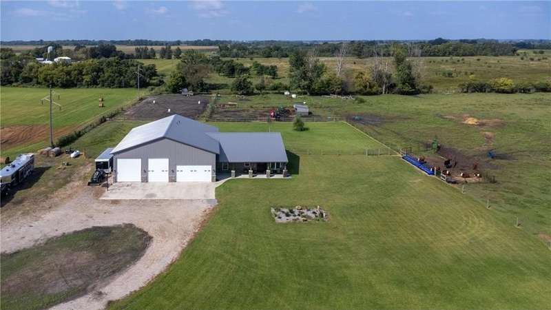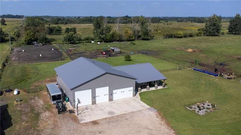 Welcome to your dream country retreat! This remarkable property features a spacious and beautifully designed shouse (shop + house) nestled on 89.33 acres of prime land. With 5 bedrooms and 5 bathrooms, this home offers luxurious living with thoughtful upgrades throughout. Interior highlights include open concept layout with all living space on one level. Expansive windows in the living room providing breathtaking views of local wildlife. Cozy fireplace for year round comfort. Custom cabinetry with hard surface counters. Primary suite with walk in closet, built in storage, soaking tub, walk in shower and double sinks. Two additional bedrooms featuring private en suite bathrooms. Main floor laundry with abundant cabinet space. Stained concrete floors with in floor heat. Upper level great room with panoramic countryside views. Over 2,300 sq. feet of garage/shop space including an RV pull through. Approximately 27 acres of pasture and 46 acres of tillable land. Ideal for a hobby farm, horses or other animals. This rare property combines luxury, functionality and natural beauty-perfect for those seeking space, privacy and versatility. Opportunities like this don't come often-schedule your showing today.