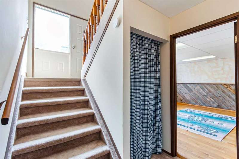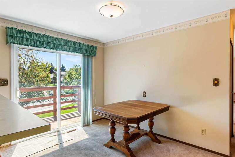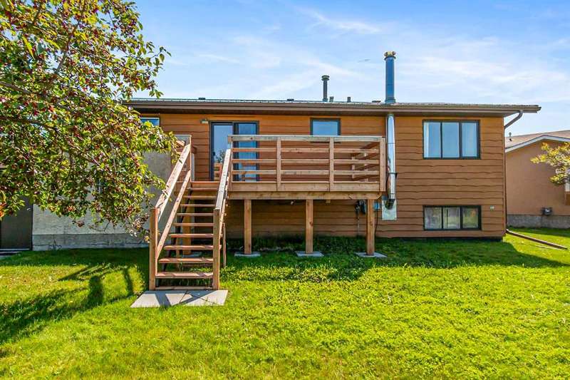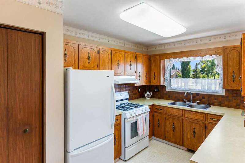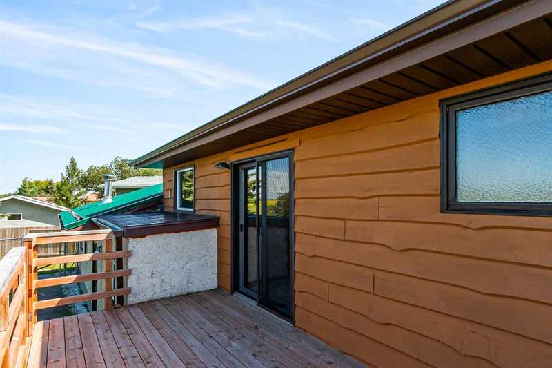 Discover this well maintained 1,178 sq. ft. bi-level home, ideally located in a desirable neighborhood with convenient access to amenities and scenic surroundings. The main floor boasts a spacious living room, dining area, and kitchen. Step outside to a south facing balcony off the kitchen and dining area, or enjoy the large deck off the 2nd bedroom. The primary bedroom and two full bathrooms complete the main living level. The fully finished basement offers even more living space, including a good-sized bedroom, a large recreation room with a cozy wood-burning fireplace, a den, a 3-piece bathroom, and a laundry/storage room with ample storage. A separate basement entrance from the garage adds for extra convenience. The garage has two doors with with 2 openers. Set on a large, irregularly-shaped lot with back-alley access, the backyard backs onto serene farmland, offering privacy and scenic views. The back yard also has ample room for parking. This home blends comfort, functionality, and charm, making it a perfect choice for families or anyone seeking a versatile living space in a great location.
