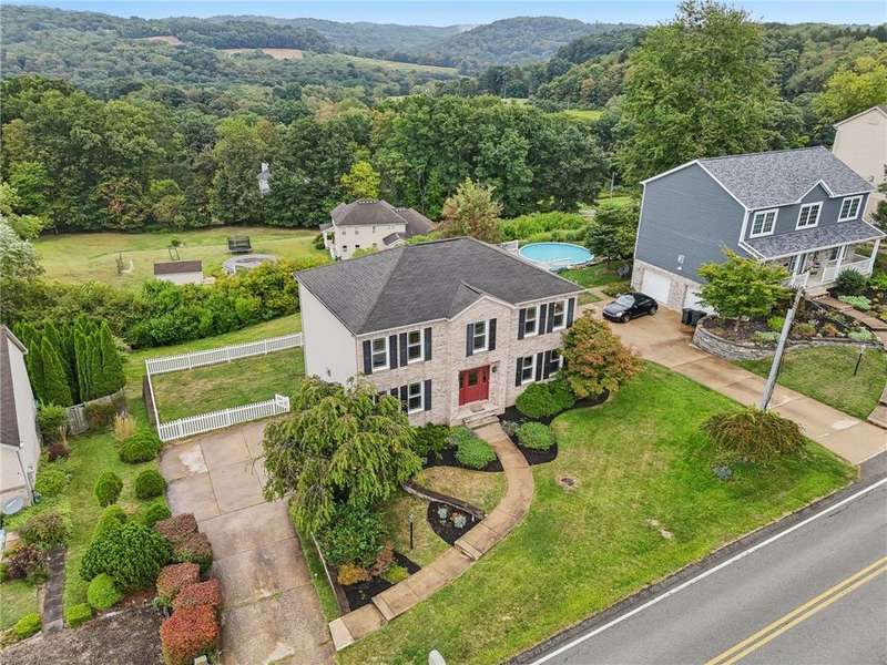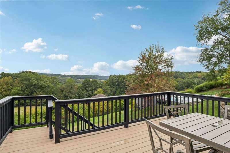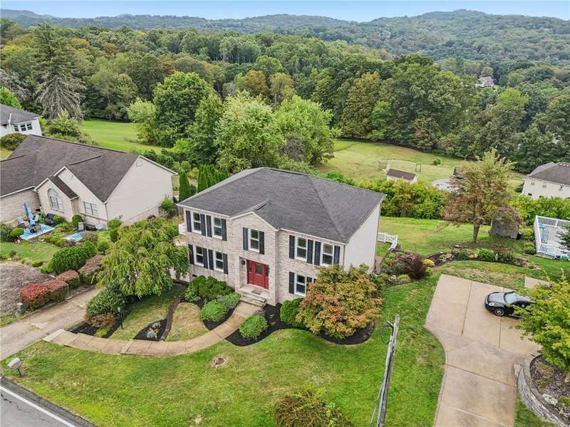STUNNING VIEWS! Custom stately brick home with an open floor plan & stunning updates throughout! The foyer leads to an updated kitchen featuring granite countertops, center island, upgraded stainless steel appliances, & smart refrigerator. Enjoy morning coffee in the breakfast area or on the deck with incredible views of the rolling hills of Penn Township/Murrysville. The fabulous family room offers a gas fireplace & bay window with french doors to formal living. Formal dining rooms showcase crown molding. The primary suite boasts a walk-in closet & spa-like bath with jet tub with shower, & vessel sink. Convenient 2nd floor laundry. Finished lower level with powder room & walkout to Omni brick patio overlooking a large lush yard. New windows! Fantastic location just minutes to shopping, dining, Rt 22 & the Turnpike.