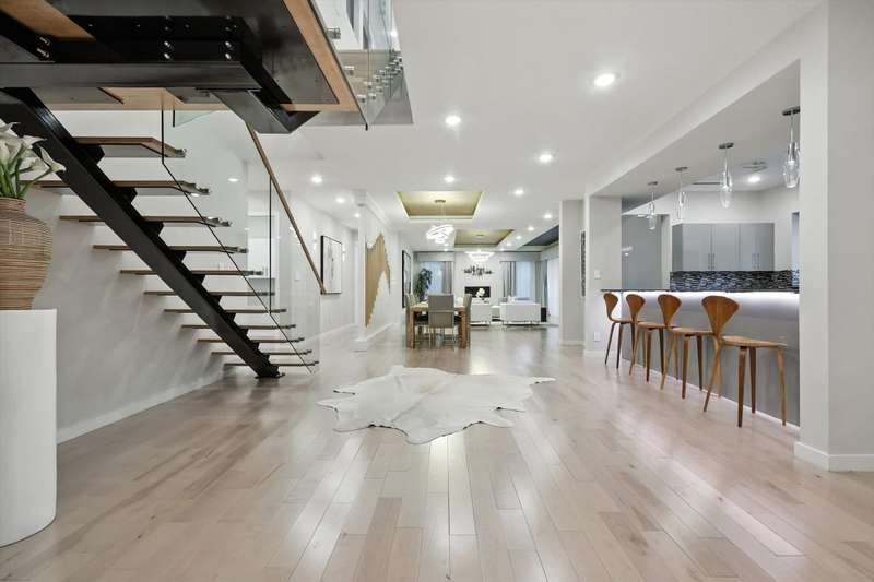Welcome to this stunning modern home that perfectly blends luxury with the tranquility of nature. Nestled on a picturesque creek lot, this spacious 4-bedroom residence offers serene creek views and a peaceful backdrop for everyday living. Step inside to discover a bright, contemporary interior featuring clean lines, stylish finishes, and an abundance of natural light throughout.The open-concept living spaces flow seamlessly to the backyard oasisan entertainers dream with a large deck overlooking a sparkling pool, ideal for relaxing or hosting gatherings with friends and family. The thoughtfully designed floor plan includes a primary suite conveniently located on the main level, while three additional bedrooms and a spacious family room upstairs provide ample space for everyone.Whether youre unwinding by the pool, taking in the scenic creek views, or enjoying the modern comforts inside, this exceptional home offers your own private retreat in an unbeatable location.