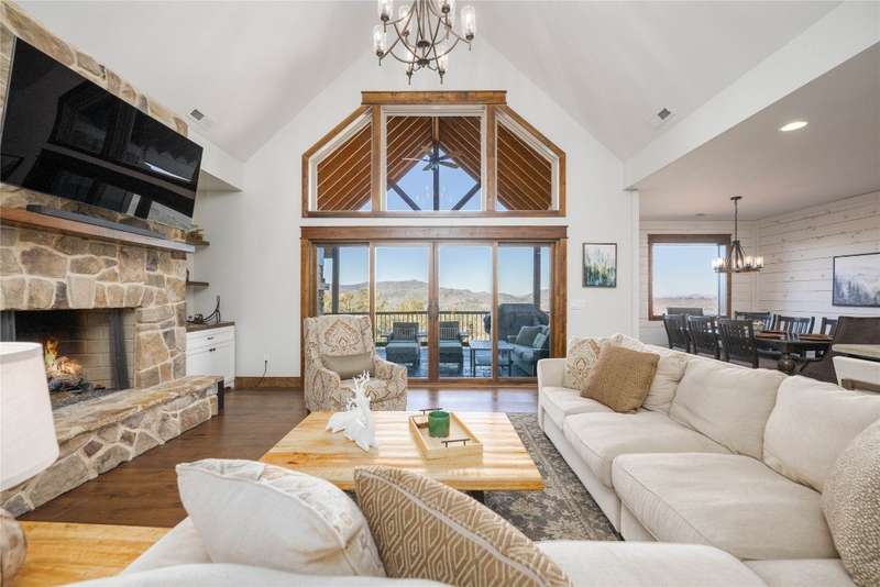 Discover the perfect blend of craftsmanship, comfort, and breathtaking mountain and lake vistas in this custom-built Arts and Crafts home, nestled within the gated community of Greycliff. Just a 15-minute scenic drive from the charming town of Cashiers, this home offers the serenity of mountain living with convenient access to Lake Glenville and a community boat dock. Situated at an elevation of 4,000 feet on about 1.37 acres, delight in cool temperatures and year-round natural beauty. Offered fully furnished with few exceptions, this meticulously maintained home is truly move-in ready to enjoy this season. With historically low inventory on the plateau, now is the time to secure a dream mountain retreat in a community experiencing exciting small-town charm and growth. Thoughtfully designed with high-quality materials, this home showcases timeless architectural elements, including cedar shakes, stone columns, and a welcoming entryway. 2024 updates include fresh interior and exterior paint, newly installed hardwood floors throughout, and stunning Cristallo Quartzite countertops in the spacious kitchen. The open-concept floor plan is perfect for entertaining and relaxation. The great room features a striking stone fireplace, soaring ceilings, and expansive windows that frame mesmerizing long-range mountain views. The well-appointed kitchen provides ample storage, a large walk-in pantry, and an inviting layout for culinary creations. The main level features a luxurious primary suite with a spa-like ensuite bathroom and private deck access - an ideal spot to wake up to breathtaking mountain scenery. A second main-level bedroom with an ensuite bathroom ensures comfort and privacy for guests. The lower level offers a generous family room, media and game area, and two additional bathrooms and bedrooms, one of which includes four built-in bunk beds. Above the spacious two-car garage, a large bonus room presents endless possibilities, whether as a home office or workout space - all while showcasing incredible long-range mountain views. Designed for embracing the great outdoors, this home features expansive decks on both the main and lower levels, complete with a fireplace, grilling area, and hot tub. Greycliff is vacation rental-friendly, offering excellent investment potential while maintaining a peaceful retreat. Ready to leave behind the heat and hustle of city life? This stunning mountain home provides the perfect sanctuary.