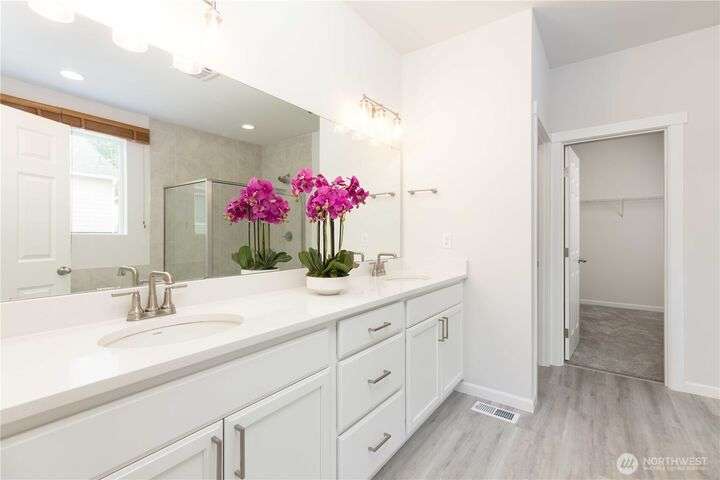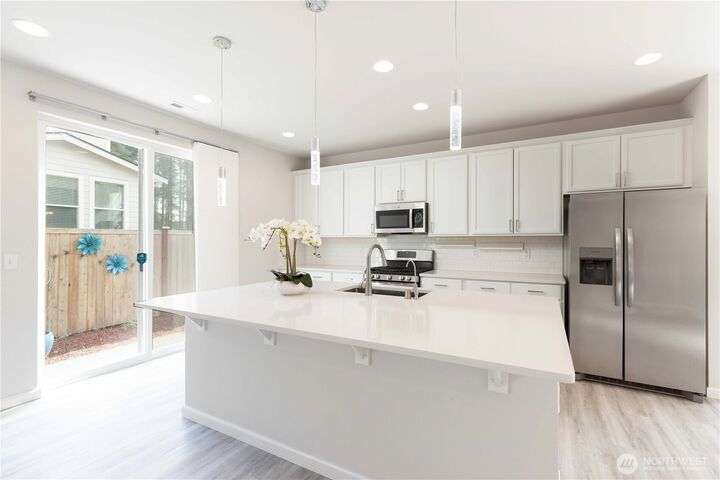Welcome to this stunning like-new resale featuring the sought-after Bedford floor plan by Richmond American. Thoughtfully designed for modern living, this two-story home offers a spacious and inviting layout. The main level boasts a bright and open great room with a cozy fireplace, a stylish kitchen, plus dining space. Upstairs, enjoy the ease of a centrally located laundry room, a generous loft ideal for relaxation or play, a full bathroom, and three well-sized bedrooms. The luxurious primary suite is complete with an expansive walk-in closet and a private bath with walk-in shower. This move-in-ready home combines tasteful upgrades with timeless design. Heat pump to control your climate. Private patio plumbed for gas. A must see!