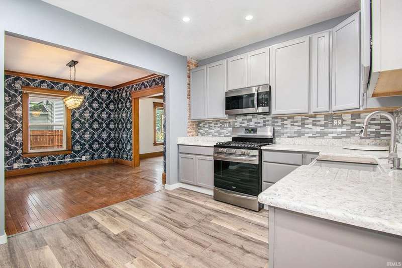OPEN HOUSE 10/12/2025 12-2 PM THIS ELEGANT HOME HAS BEEN RECENTLY UPDATED AND RESTORED TO ITS FORMER GLORY. THE MAIN FLOOR features a KITCHEN with granite counters, refinished cupboards, tile backsplash, newer appliances with a built-in microwave, THE LIVING ROOM has a beamed ceiling and along with the DINING ROOM and PARLOR has polished oak hardwood flooring. The main floor also has a LAUNDRY ROOM with built-in shelving and a newly redone FULL BATH with quartz sink and stand up round shower. The STAIRWAY going upstairs has new carpeting and all 3 BEDROOMS have polished wood floors and ceiling fans. The FULL BATH has a new designer bathtub and granite counters, plus there is a LAUNDRY ROOM upstairs as well. THE BACKYARD is completely fenced in with a garden, stone bird bath, firepit and an above ground swimming pool. THE LOCATION CAN'T BE BEAT-JUST MINUTES TO THE HIGH SCHOOL AND THE VIBRANT MISHAWAKA DOWNTOWN AREA.
