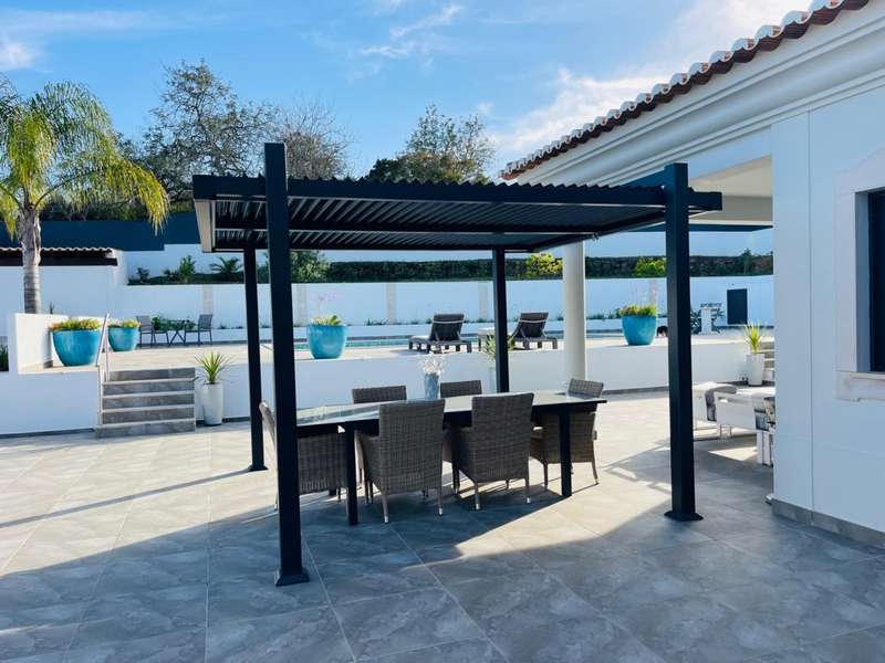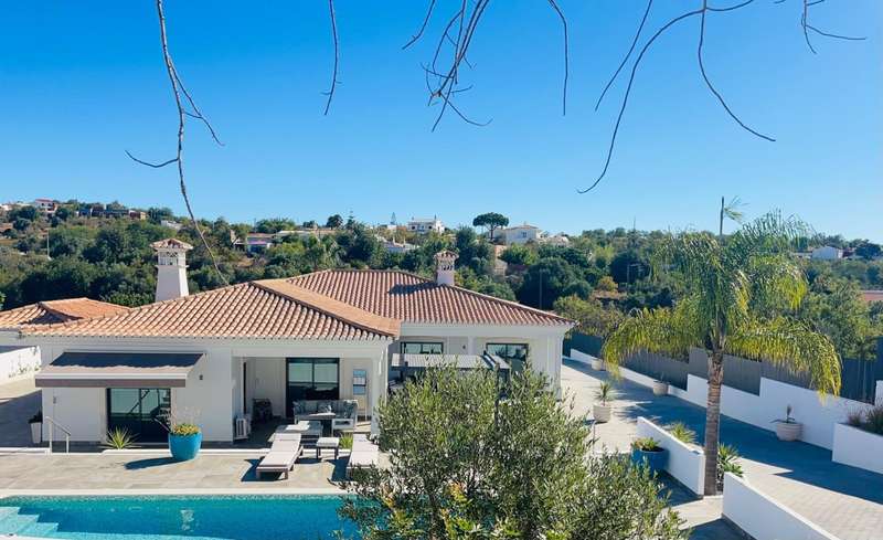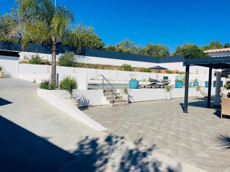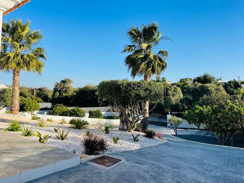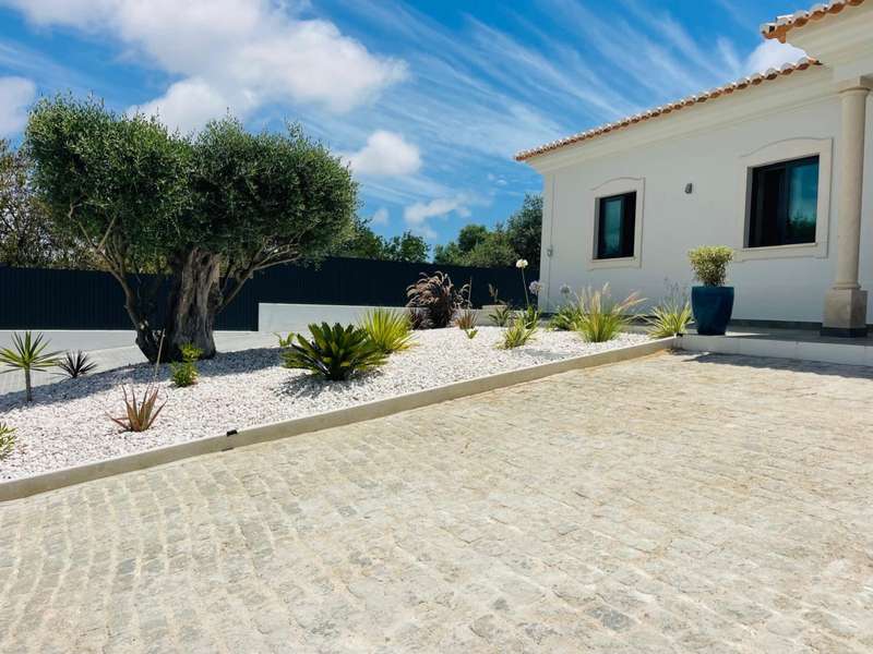 Magnificent 4-bedroom villa, recently renovated, with a contemporary design, swimming pool and large green spaces, located in a quiet urbanization in the peaceful village of Boliqueime, Algarve. the first floor is where all the living spaces are located, making it easy to move between the different areas. This totally independent property consists of 4 bedrooms, all with built-in closets, 2 of which are en suite, a large office, a kitchen equipped with appliances from the prestigious De Dietrich and Smeg brands, and a large living room, which via a wooden staircase gives access to a huge basement. The surrounding outdoor space is organized into various leisure areas, allowing total freedom for various activities or simply moments of reading or silence in communion with nature. All the garden areas have been designed and organized in a sustainable and low-maintenance way, without grass, but with plants and trees that require little water consumption. It has a beautiful and generous vegetable garden with fruit trees, in its own space and fenced off by a wall and independent gate. Located in a quiet residential area, just 5 minutes from all the amenities, schools and supermarkets of Boliqueime. CHARACTERISTICS: Plot Area: 2 400 m2 | 25 833 sq ft Deployment Area: 302 m2 | 3 253 sq ft Building Area: 409 m2 | 4 405 sq ft Bedrooms: 4 Bathrooms: 3 Energy efficiency: D FEATURES: 4-bedroom villa Independent Renovated Swimming pool Green spaces Basement