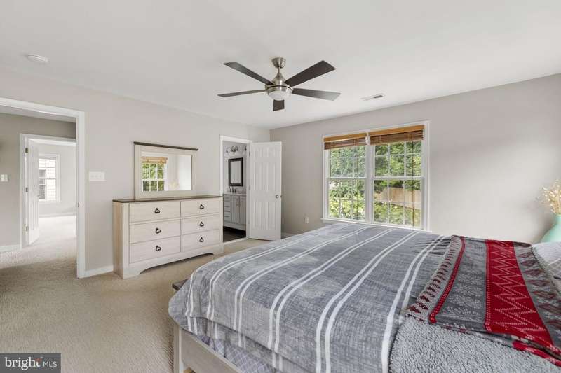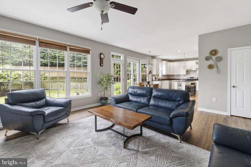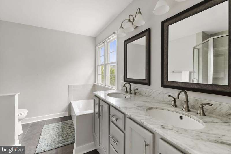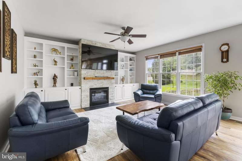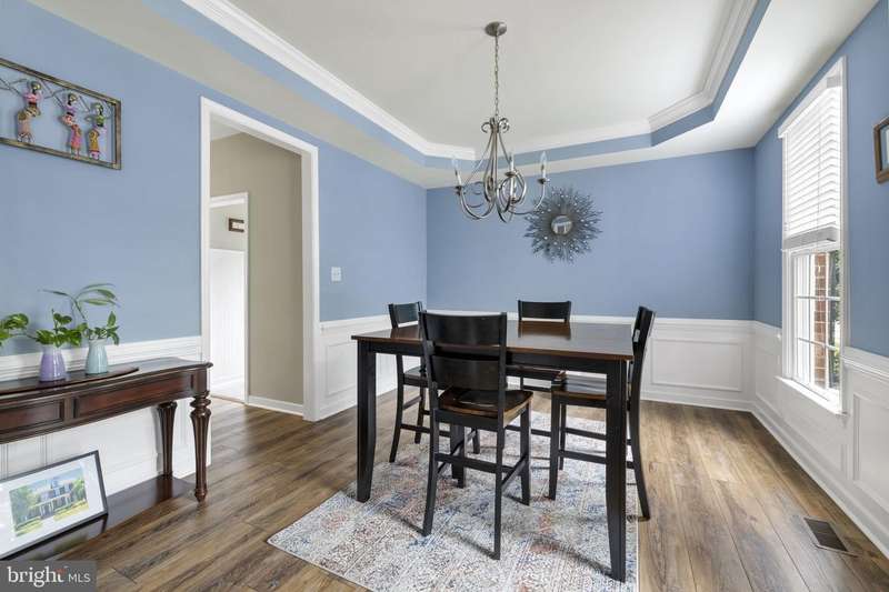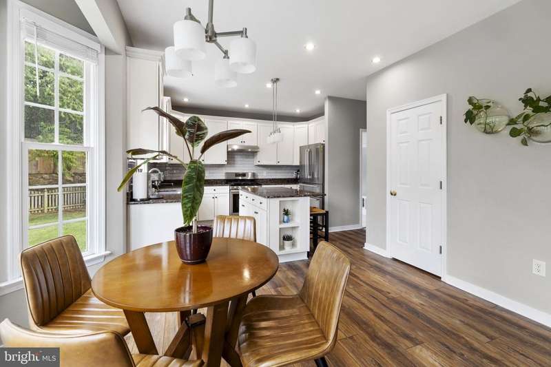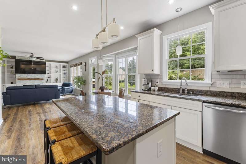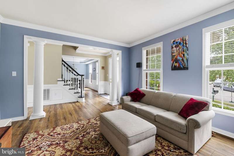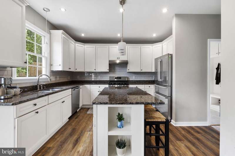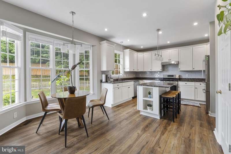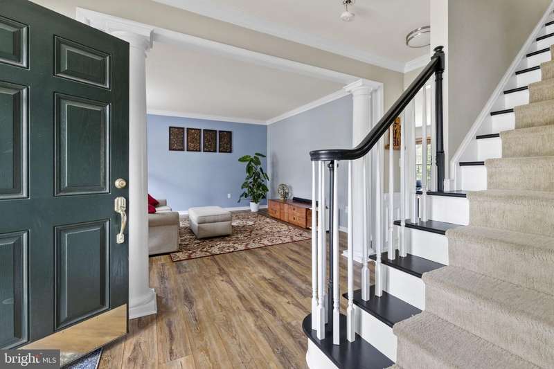 Beautifully maintained and fully renovated, this 5-bedroom, 3.5-bath home is situated on a spacious cul-de-sac lot with a fenced backyard and an oversized patio, ideal for outdoor living. A charming front porch welcomes you into a wide foyer flanked by formal living and dining rooms enhanced with custom millwork, crown molding, columns, and a tray ceiling with picture molding and chair rail. The updated eat-in kitchen boasts white cabinetry, granite countertops with island seating, tiled backsplash, recessed and under-cabinet lighting - an ideal space for gathering and cooking. The inviting family room features a gas fireplace, abundant natural light, and built-in bookcases with backlighting. Upstairs, the primary suite offers two closets and a luxurious renovated ensuite with marble countertops and a tiled shower. Three additional bedrooms share an updated bath. The third floor serves as a versatile 5th bedroom or flex space with two bonus areas and a full bath. Additional highlights include a laundry room, mudroom with built-in bench and storage, a large 2-car garage with walk-up attic storage, a newer roof (2020), and low-maintenance brick and vinyl exterior. Move-in ready with thoughtful updates throughout!