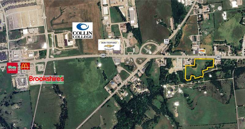 Exciting 8.3+ Acre Development Opportunity in Farmersville.This property offers 591 feet of frontage on Highway 380 (Audie Murphy Parkway). Farmersville is experiencing significant growth, with new developments like the Collin County College campus and an eastward expansion of growth patterns in eastern Collin County.Strategically located between Highway 78 and the Collin County Outerloop, this property is ideal for retail, residential, or mixed-use development, with retail along the front and residential or multifamily in the back.Farmersville is positioned for major growth, as it borders Princeton, which is the nation's fastest-growing city. The majority of the property is within city limits and currently holds an agricultural exemption.