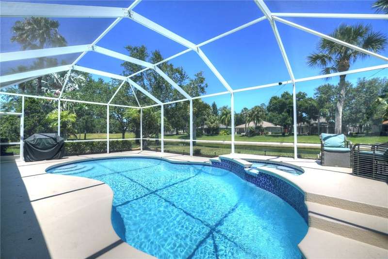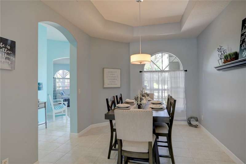 Beautifully furnished 4BD/3BA pool home in a private gated community with tennis, clubhouse pool & dock for sunset views. Enjoy a screened lanai with heated pool & spa, tray ceilings, spacious primary suite, multiple dining areas & a versatile bonus room. Central vac adds ease. Updates include new roof, A/C & pool heater. Move in ready fully furnished & full of charm. Close to beaches, dining, & shops! Room sizes approx. & subj. to verify. Enjoy peaceful lake views, lush tropical landscaping, & an inviting open layout perfect for entertaining