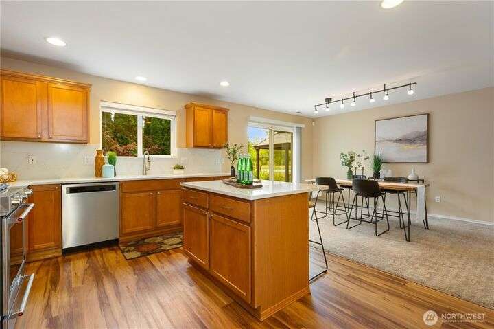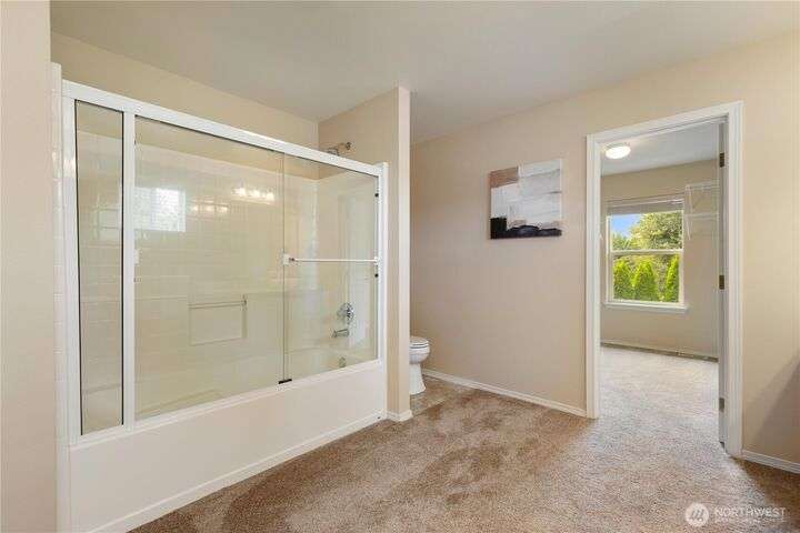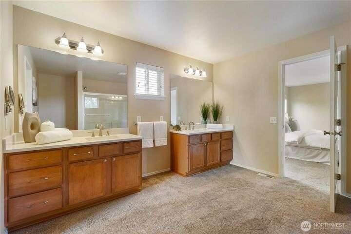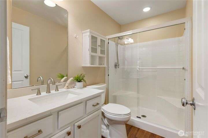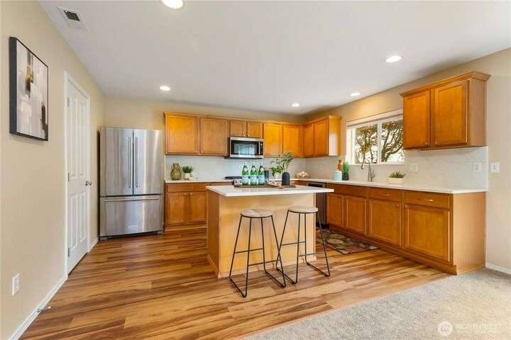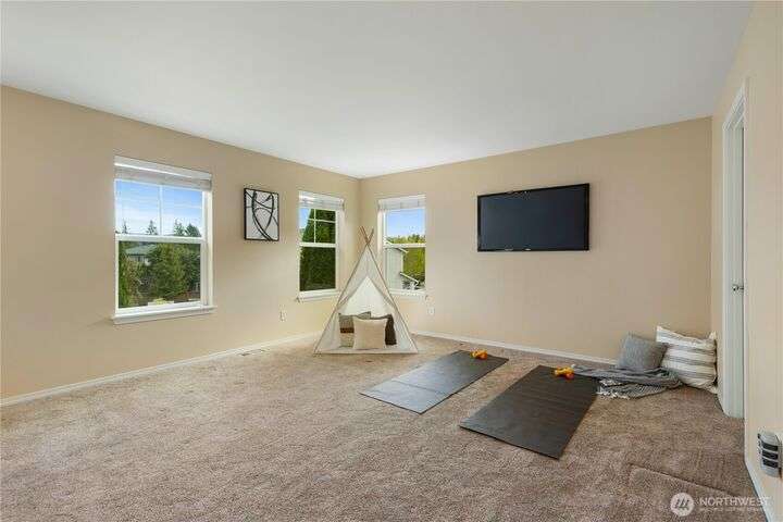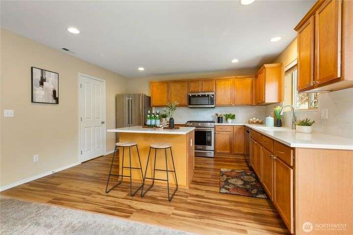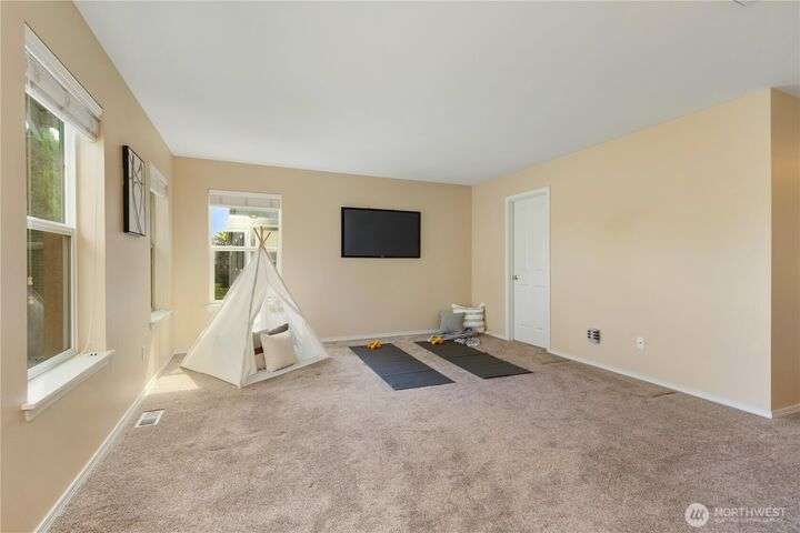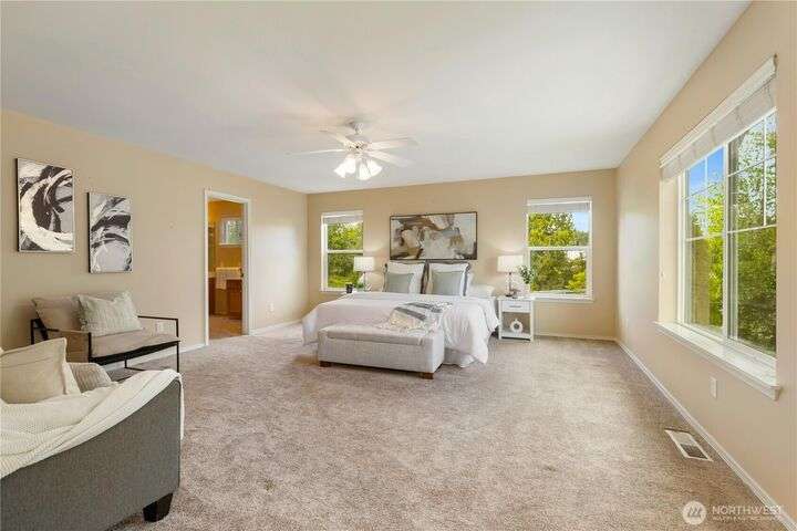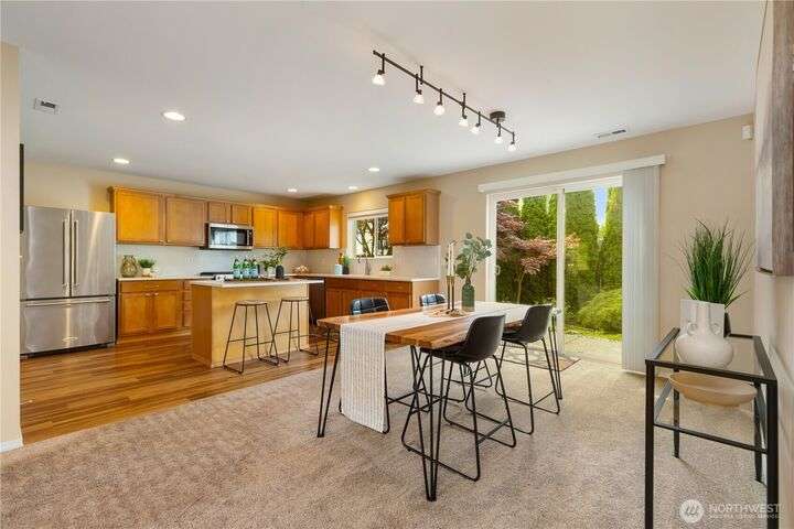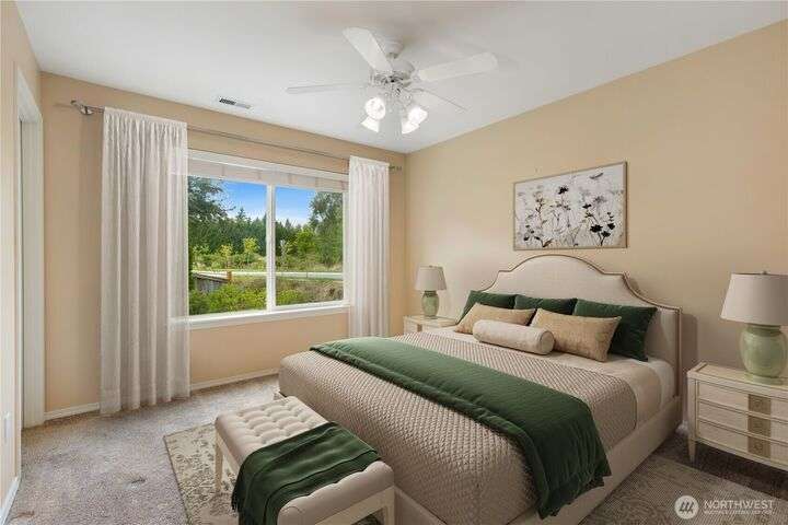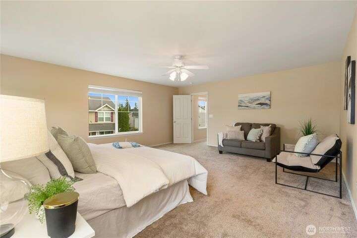 Welcome to the Farm at Woods Creek, where you will find this spacious home tucked at the end of a quiet dead end lane. The 2,678 square foot two-story offers the perfect blend of comfort & flexibility. A main floor bedroom with nearby ¾ bath is ideal for guests or multigenerational living. Sunlit living spaces flow into the open kitchen and dining area, creating a natural hub for gatherings. Upstairs, retreat to the spacious primary suite while the versatile bonus room offers endless options—movie nights, play space, or a home office. Enjoy the outdoors with the expanded patio, newly landscaped & fully fenced yard. With room to grow and spaces designed for connection, this home is ready to be your forever home. Just perfect, come see!