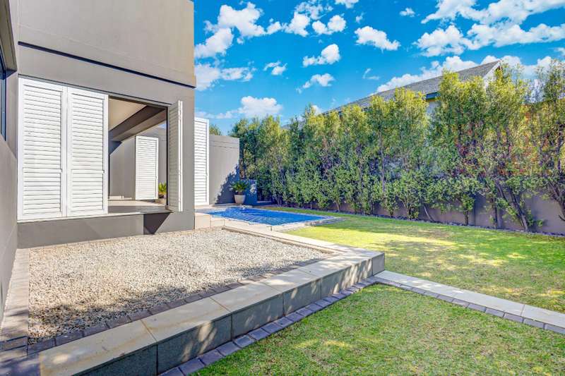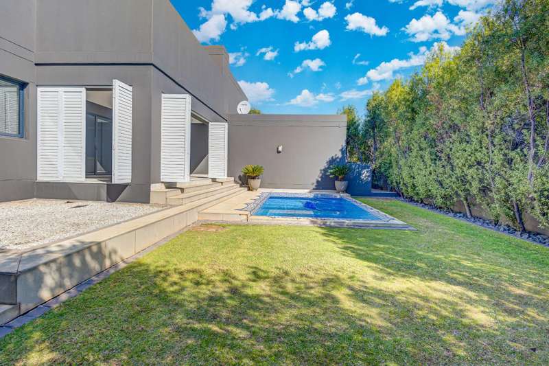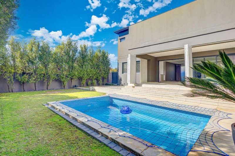 Welcome home- a private sanctuary of serenity and peace. it welcomes one with a double volume entrance, opening to spacious living areas, hosting a lounge with central gas fireplace and a designed dining room, both flowing to a sunny covered patio with security plantation shutters. The patio opens to a sparkling pool and landscaped garden offering space and privacy. Gourmet kitchen with a generous amount of cupboards and counter space- its filled with sunlight. Gas hob makes cooking a pleasure and a tidy scullery caters to the rest - this opens to the back of the house and hosts appliance space . Guest bedroom with fitted blinds and tinted windows for privacy Guest bathroom Upstairs leads one to stylish , private family spaces- a cosy leisure lounge and light filled passage leading to 3 generous bedrooms', each with their own en- suite and lots of cupboard space. The Master suite opens to serenity and privacy - with a spacious room, private balcony and a beautiful en- suite bathroom with greenbelt views. There is more than enough cupboards- even your husband can have one! Features on offer include: Greenbelt stand Double automated Garage with cupboard space Solar system with Battery back up Sparkling pool and landscaped low maintenance garden Storage room Air conditioning Secure property.