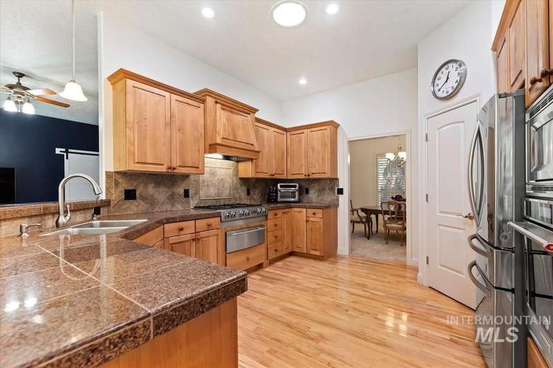 Beautiful luxury home in desirable Bear Creek on a .39 acre east-facing cul-de-sac lot. Spacious single-level design with 4 bedrooms on main level (all with walk-in closets) den, office, formal dining, and oversized laundry, plus an expansive upstairs bonus room with full bath and storage. Gourmet kitchen boasts tile granite counters, breakfast bar, abundant cabinetry, and stainless appliances. Luxurious primary suite offers a spa-like retreat with walk-in shower, relaxing soaker tub, and oversized walk-in closet. The 4-car heated garage features built-ins, a workbench, and abundant storage. East-facing fenced backyard is an entertainer’s dream with outdoor kitchen/BBQ, hot tub, lush landscaping, mature trees, storage shed, and a large concrete pad for sports, gatherings, or parking. Numerous upgrades include fresh interior paint, new carpet, and flooring. Walking distance to Victory Middle School and community park. A rare find offering elegance, function, and lifestyle—see full list of upgrades in docs tab.